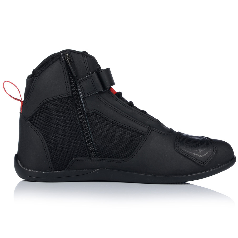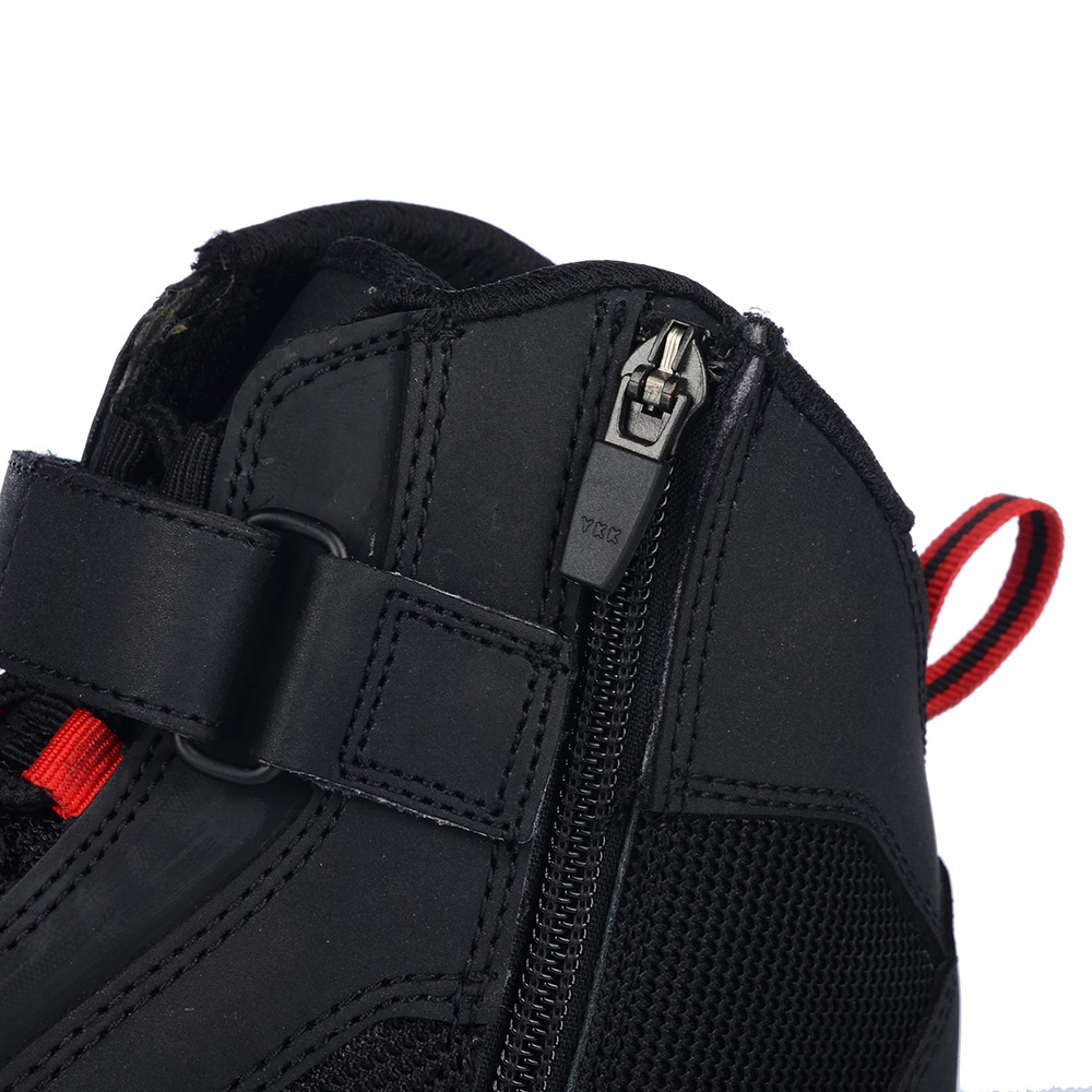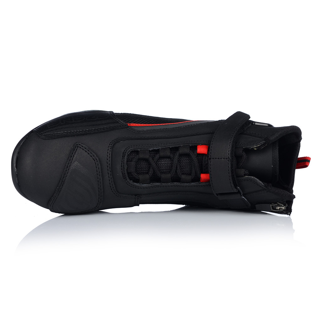 Krótkie, miejskie buty motocyklowe – Ozone CITY. Będą odpowiednim uzupełnieniem stylówki na motocykl typu naked lub klasyk. Posiadają wygodne sznurowania oraz zapięcie na rzep i zamek – dla wygody zakładania. Ochraniacze kostki i wzmocnienie pod dźwignię zmiany biegów, olejoodporna i antypoślizgowa podeszwa sprawiają, że buty Ozone City są bezpieczne.
