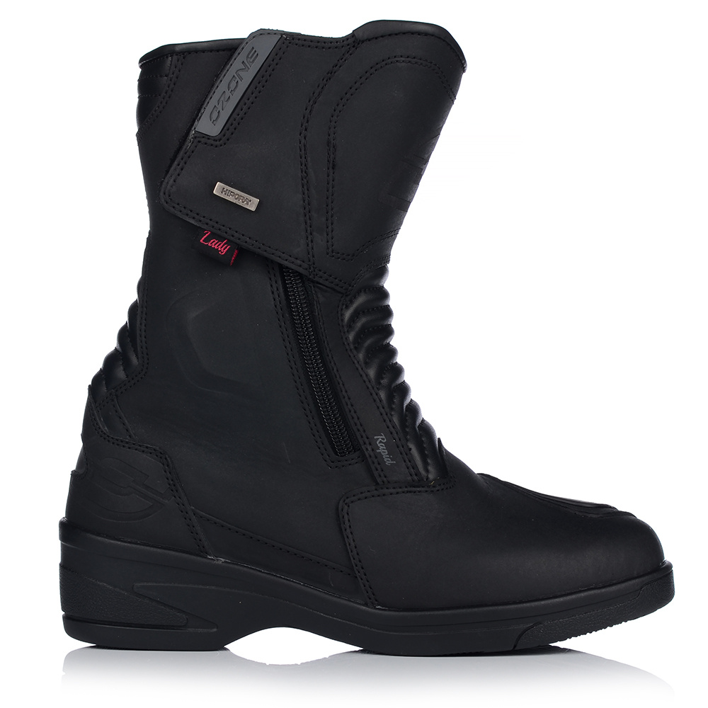 Skórzane buty motocyklowe Rapid High Heel są zaprojektowane z myślą o kobietach. Dzięki podwyższonemu obcasowi i wewnętrznemu koturnowi nie będziesz musiała obniżać motocykla, a twoja sylwetka optycznie się wydłuży. Rapid High Heel mają też membranę HIPORA i wzmocnienie pod dźwignię zmiany biegów.