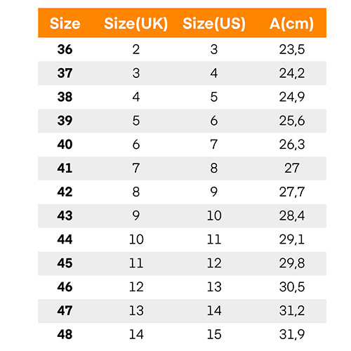 - aby prawidłowo dopasować rozmiar należy sugerować się długością wkładki. Zalecamy dodać 0,5-0,7cm do uzyskanego pomiar