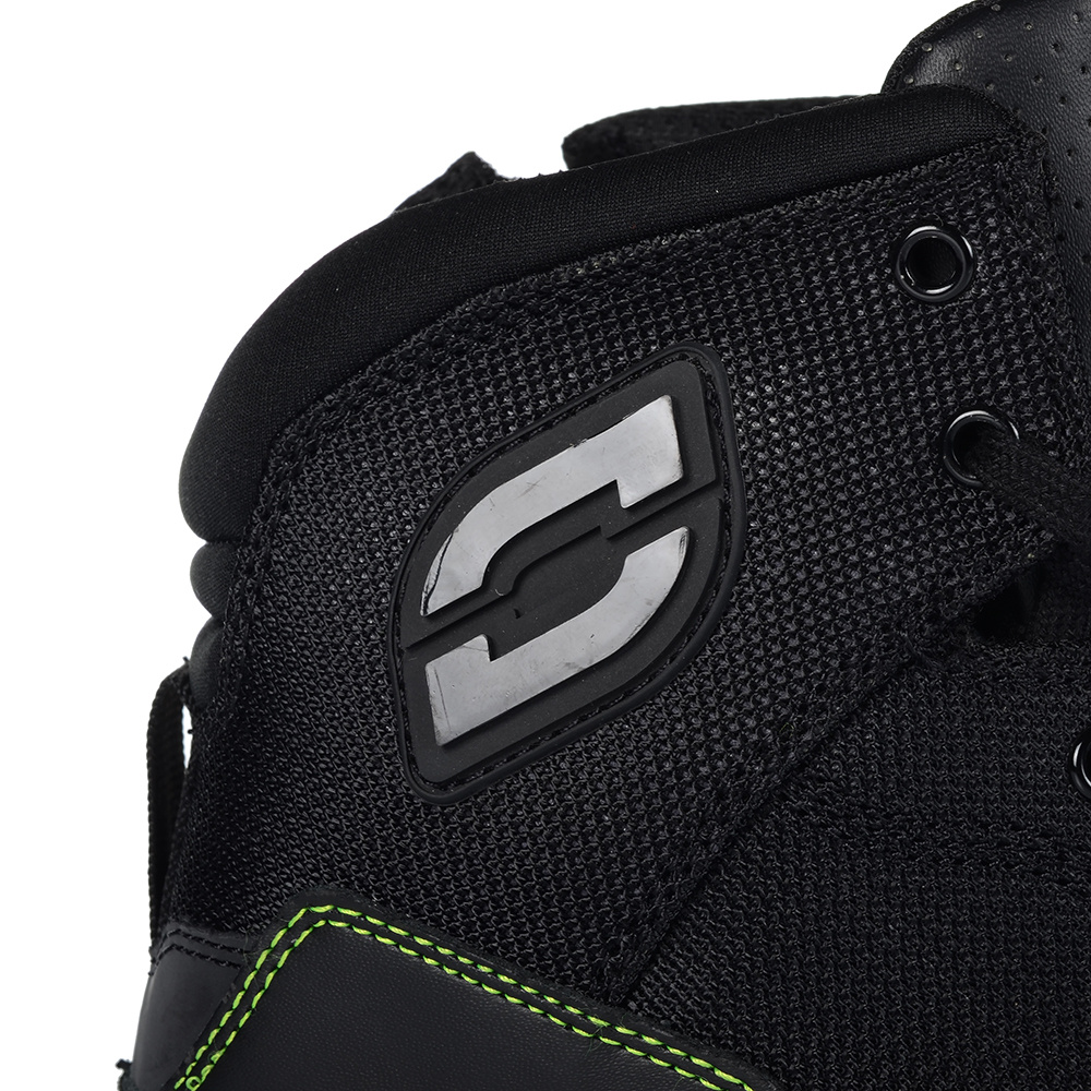 Buty motocyklowe Ozone Spin, dzięki miękkim wykończeniom dają dużą wygodę i chronią przed otarciami. Podwójne szwy znacznie zwiększają trwałość materiału. Buty motocyklowe Ozone Spin pochłaniają drgania za pomocą piankowej wkładki. Liczne wzmocnienia chronią newralgiczne obszary stopy.