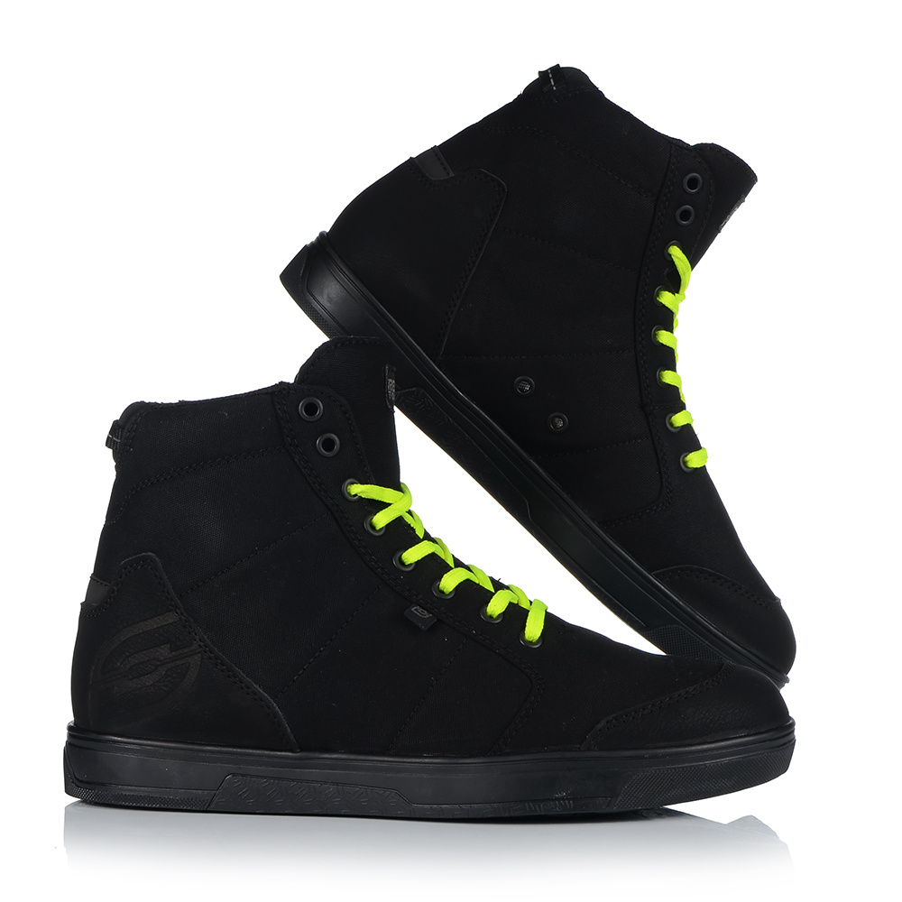 Wygodne buty motocyklowe wykonane z microfabric canvas cotton z oddychającą wyściółką poliester mesh. Mają otwory wentylacyjne po wewnętrznej stronie, wzmocnienia kostek i pięt, podwójne szwy, usztywniony czubek i antypoślizgową podeszwę. Antybakteryjna wkładka zapewnia uczucie świeżości.