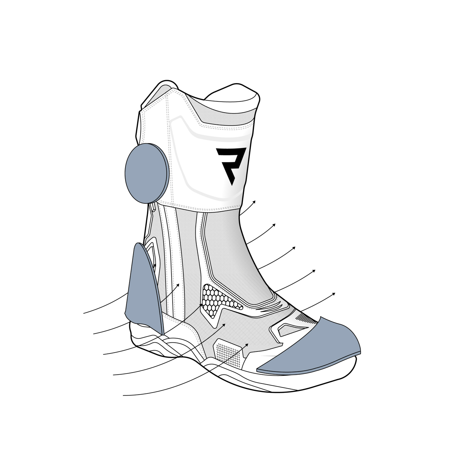 Motocyklowe buty turystyczne Rebelhorn Range zostały stworzone z połączenia materiału Microfabric oraz wtryskiwanego materiału KPU który wzmacnia newralgiczne partie i chroni przed uszkodzeniami mechanicznymi.