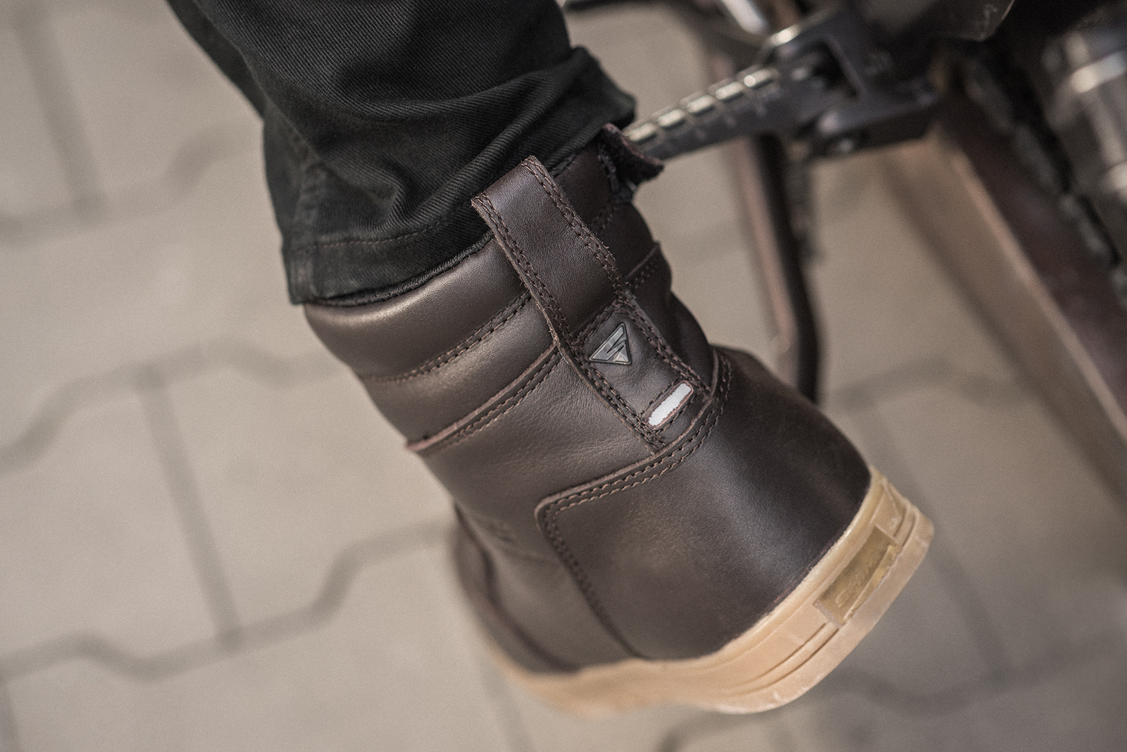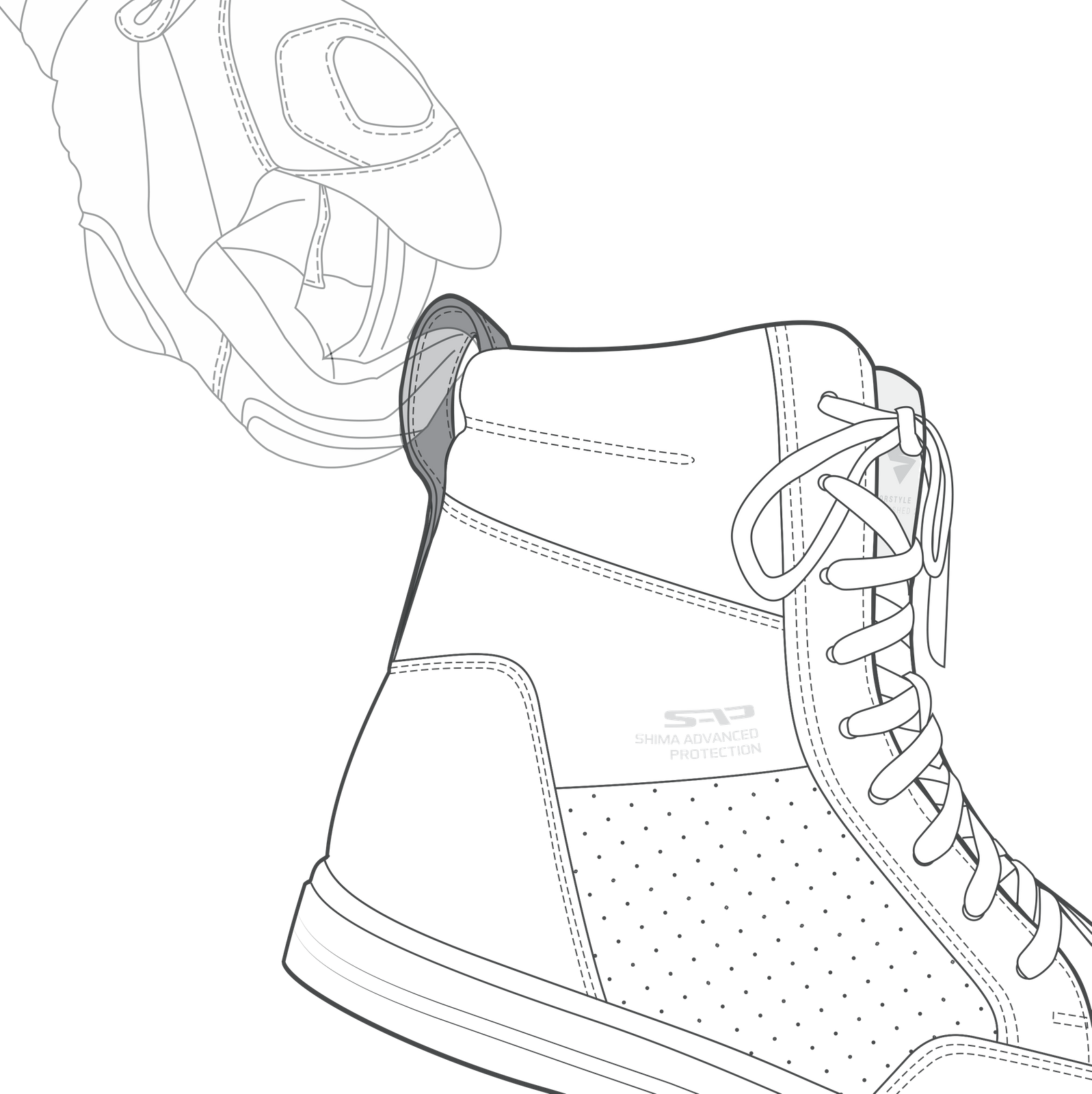 Elegancki i nowoczesny wygląd trampek motocyklowych został połączony z wygodą i ochroną. Wyposażone zostały w usztywnienie kostki dyskiem z TPU oraz wzmocnienia kostki, pięty i palców, które pochłaniają energię uderzenia w momencie upadku. Dla dodatkowej ochrony buty BLAKE posiadają wzmocnioną gumową podeszwę.