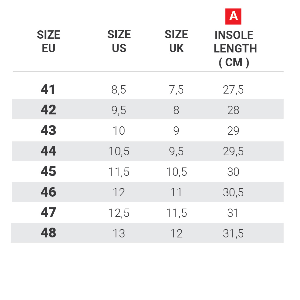 Metalowy, wymienialny slider na boku buta chroni bok i czubek stopy wspólnie z usztywnieniem ukrytym pod czubkiem. Poprzecznie wzmacniana podeszwa w systemie SafeFoot. Specjalna syntetyczna nakładka pozwala precyzyjniej obsługiwać dźwignię zmiany biegów. Perforowana skóra na przodzie buta pozwala na lekką wentylację i cyrkulację powietrza wewnątrz buta.