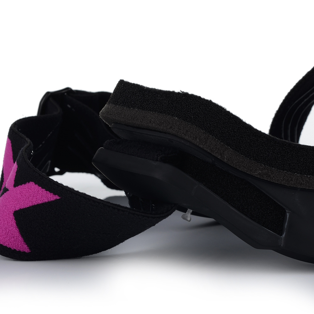 - Pasek z silikonowym nadrukiem od wewnątrz zapobiegający zsuwaniu się gogli z kasku
