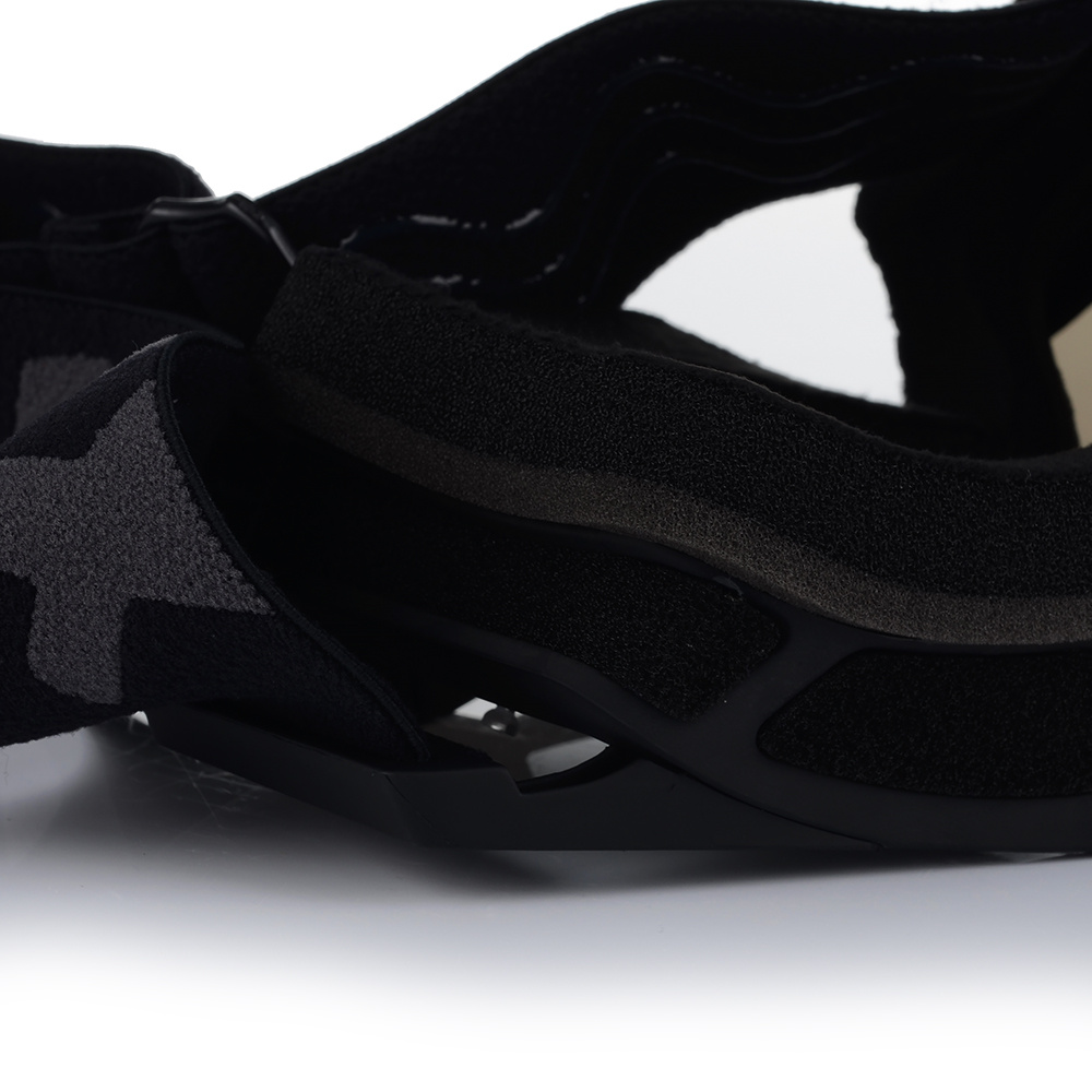 - Szeroki pasek (45 mm) z silikonowym nadrukiem od wewnątrz zapobiegającym zsuwaniu się gogli z kasku