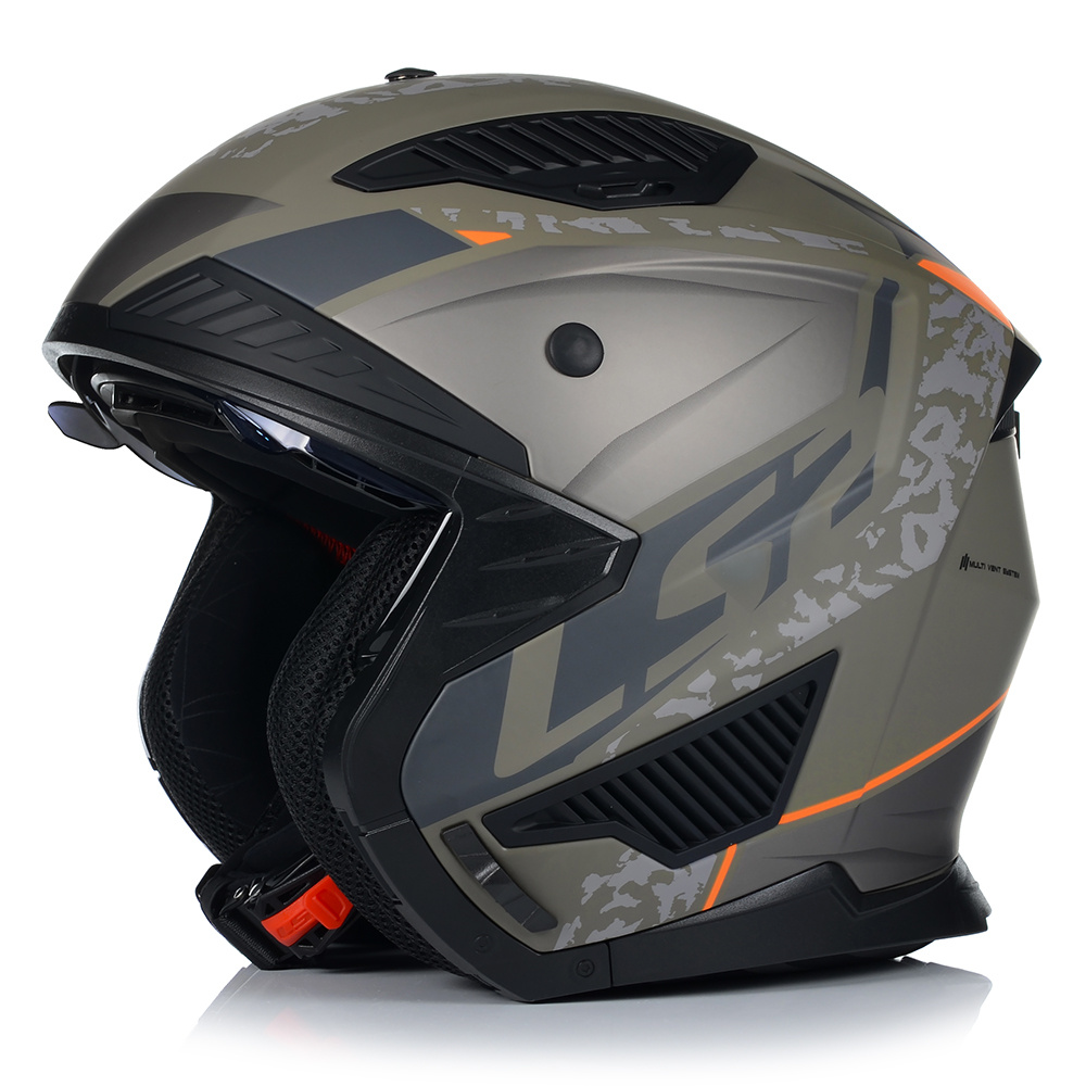 Kask trialowy o agresywnym wyglądzie. Doskonały wybór do cruiserów, trialu lub po prostu jazdy po ulicach miasta. Odpinana szczęka oraz regulowany i zdejmowany daszek. Wykonany z materiału KPA zapewniającego lekkość i większe bezpieczeństwo. Możliwość zmiany szyby z jasnej na ciemną.