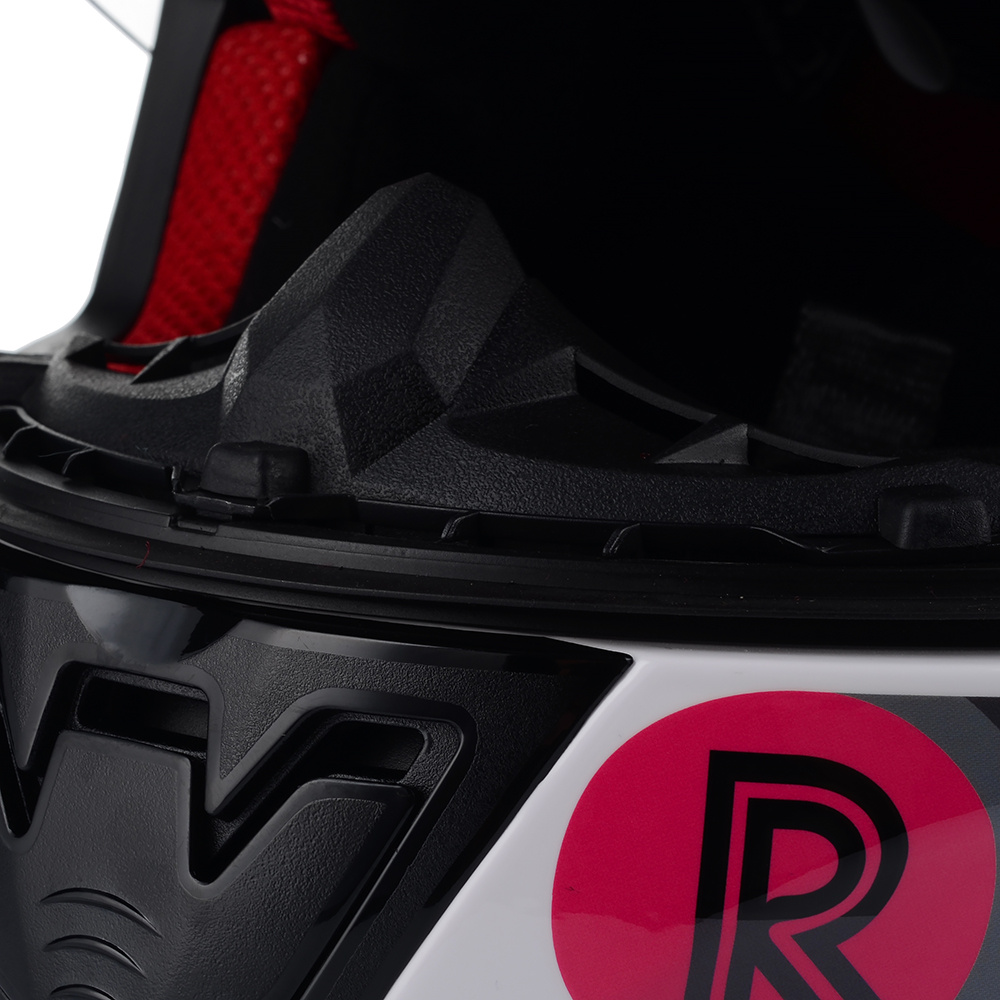 Szyba kasku jest odporna na zarysowania, parowanie i promieniowanie UV, a dodatkowo posiada piny, które umożliwiają mocowanie Pinlock'a. Deflektor nosa zapobiega parowaniu szyby, a ochrona podbródka zmniejsza hałas i zawirowania powietrza.