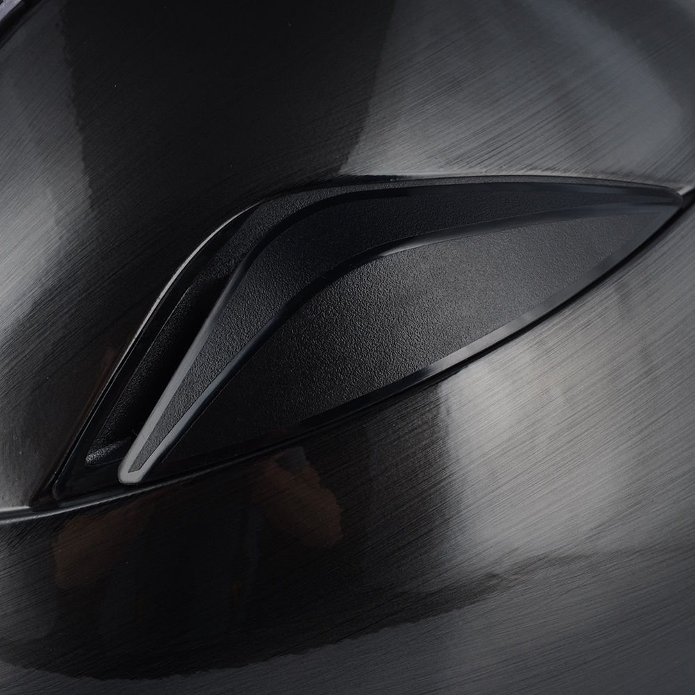Szyba kasku jest odporna na zarysowania, parowanie i promieniowanie UV, a dodatkowo posiada piny, które umożliwiają mocowanie Pinlock'a. Deflektor nosa zapobiega parowaniu szyby, a ochrona podbródka zmniejsza hałas i zawirowania powietrza.
