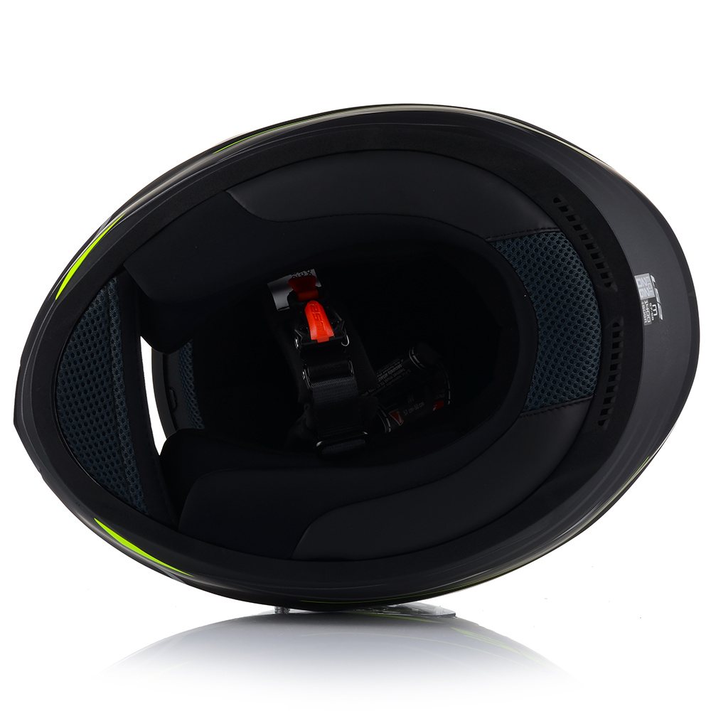 Szyba kasku jest odporna na zarysowania, parowanie i promieniowanie UV, a dodatkowo posiada piny, które umożliwiają mocowanie Pinlock'a. Deflektor nosa zapobiega parowaniu szyby, a ochrona podbródka zmniejsza hałas i zawirowania powietrza.