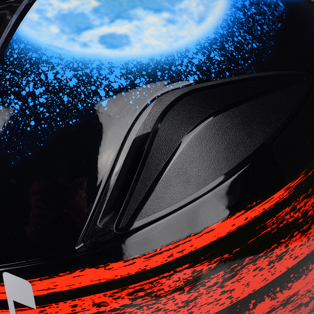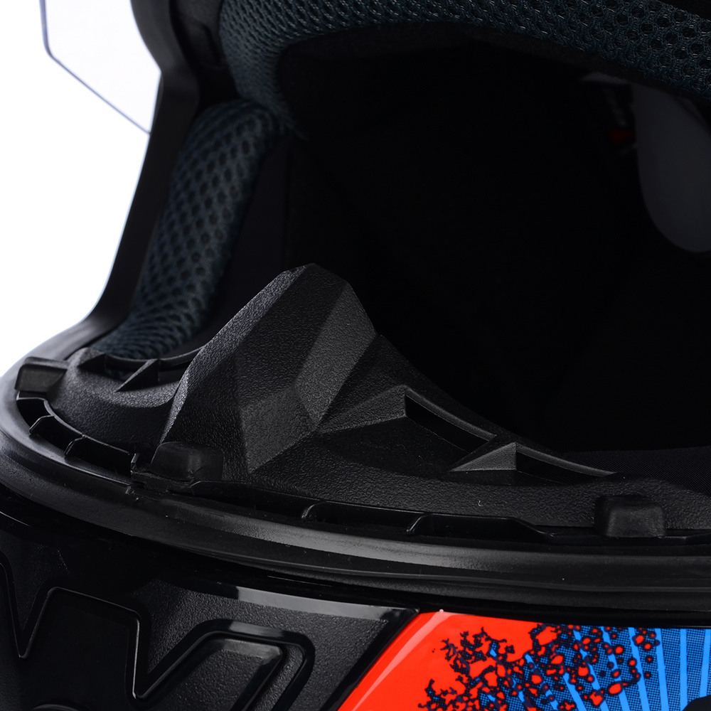 Szyba kasku jest odporna na zarysowania, parowanie i promieniowanie UV, a dodatkowo posiada piny, które umożliwiają mocowanie Pinlock'a. Deflektor nosa zapobiega parowaniu szyby, a ochrona podbródka zmniejsza hałas i zawirowania powietrza.