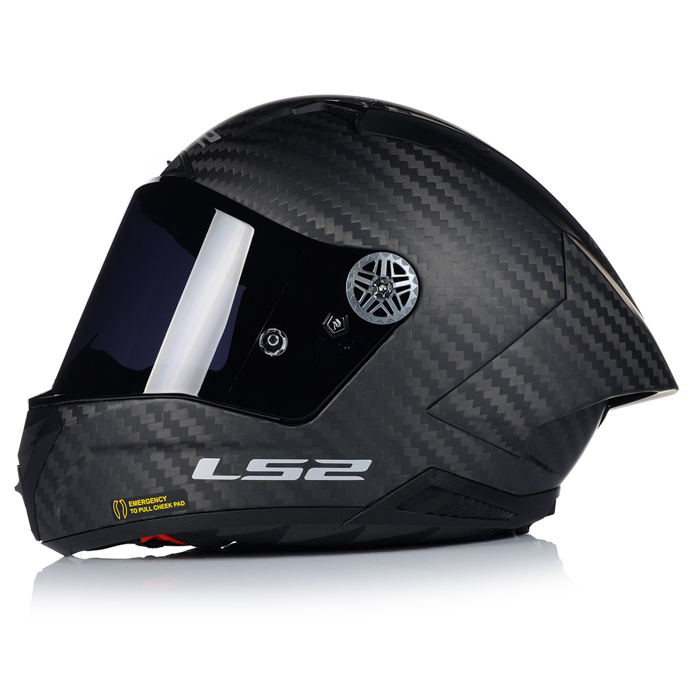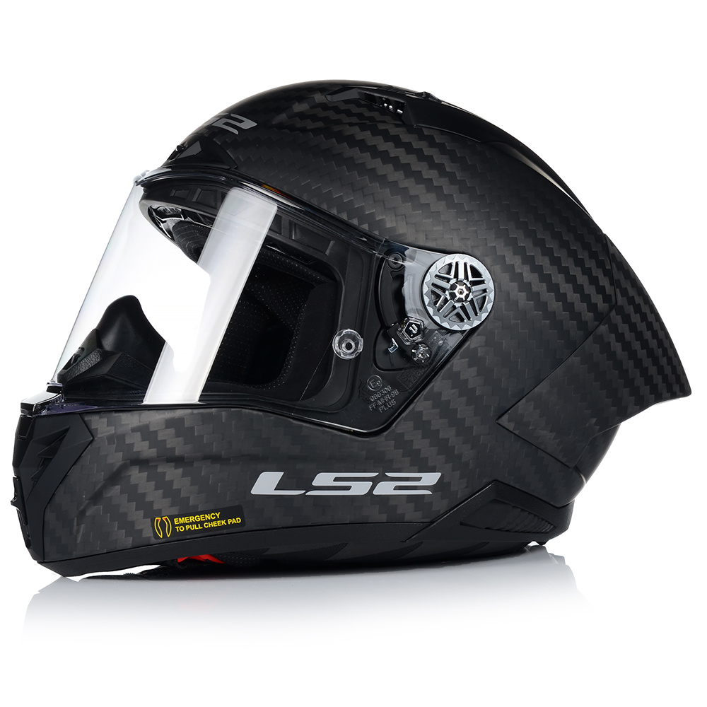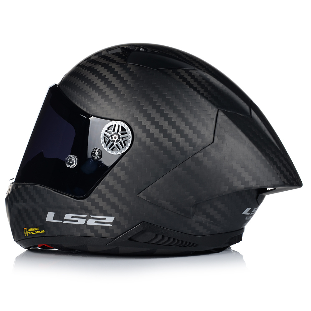 Jeździj jak PRO! Kask wyścigowy noszony przez naszych zawodników LS2 z homologacją FIM. Spoiler wyścigowy zapewniający maksymalną aerodynamikę. Lekki i wytrzymały, ze skorupą wykonaną w 100% z włókna węglowego. Doskonałe widzenie peryferyjne. System awaryjnego zwalniania podkładek policzkowych. Szeroki wizjer odporny na zarysowania przygotowany pod system Pinlock Max Vision.