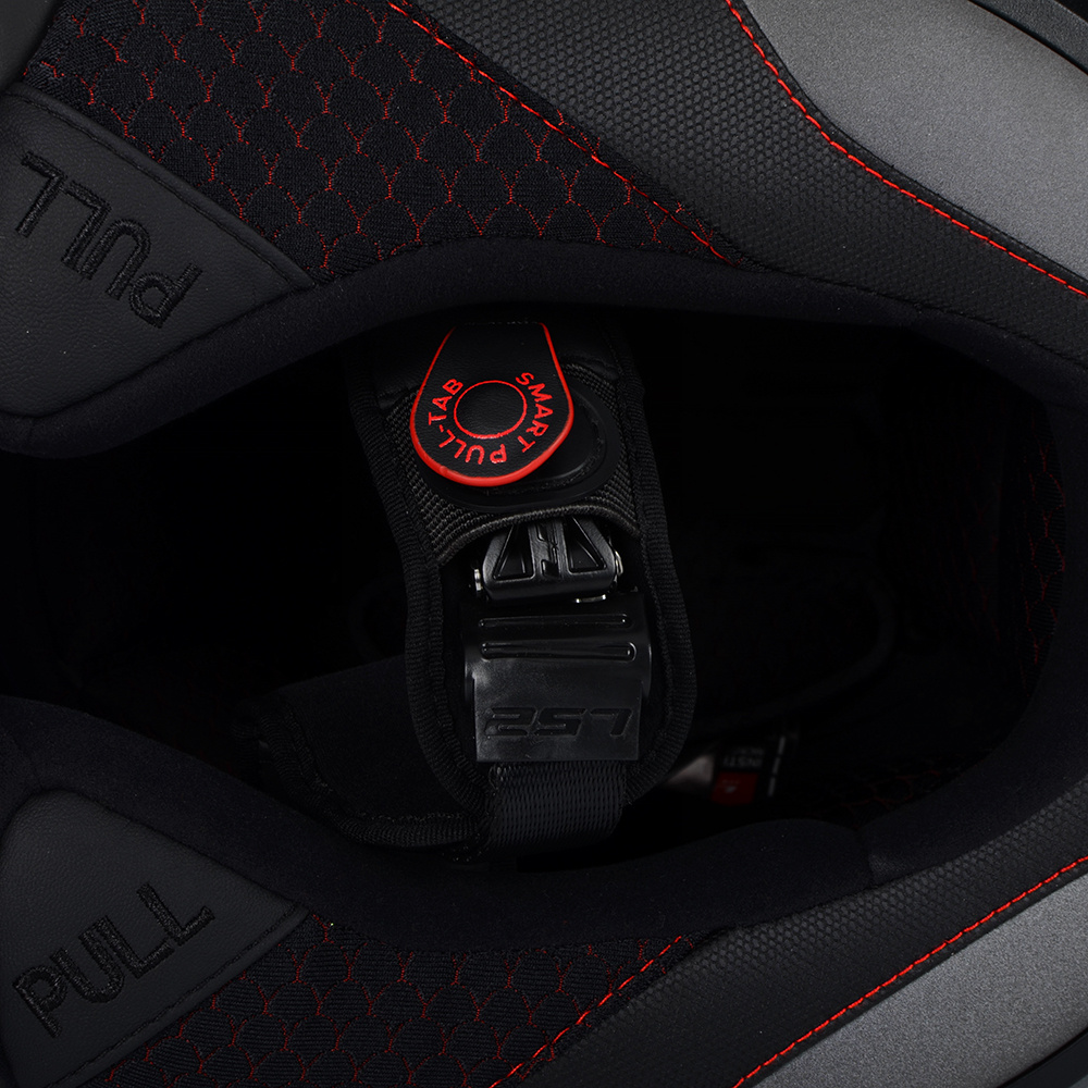 - Kołnierz zapewniający lepsze przyleganie wyściółki wokół szyi - minimalizowanie szumów i podwiewania wiatru wewnątrz kasku