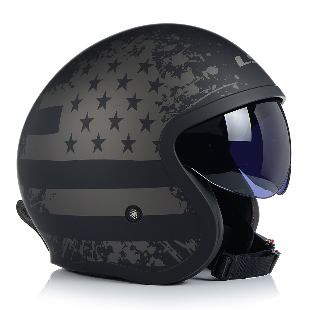 Nowoczesny i bezpieczny kask motocyklowy LS2 OF599 SPITFIRE, idealny na motocykle typu chopper, czy cruiser. Kask posiada wbudowaną blendę przeciwsłoneczną w kolorze czarnym z 2-poziomową regulacją. A dodatkowo miejsce na montaż gogli.