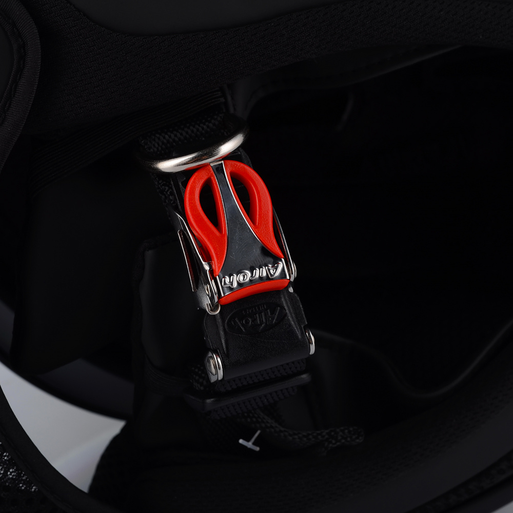 - Zdejmowana szczęka z możliwością przypięcia jej z tyłu kasku
