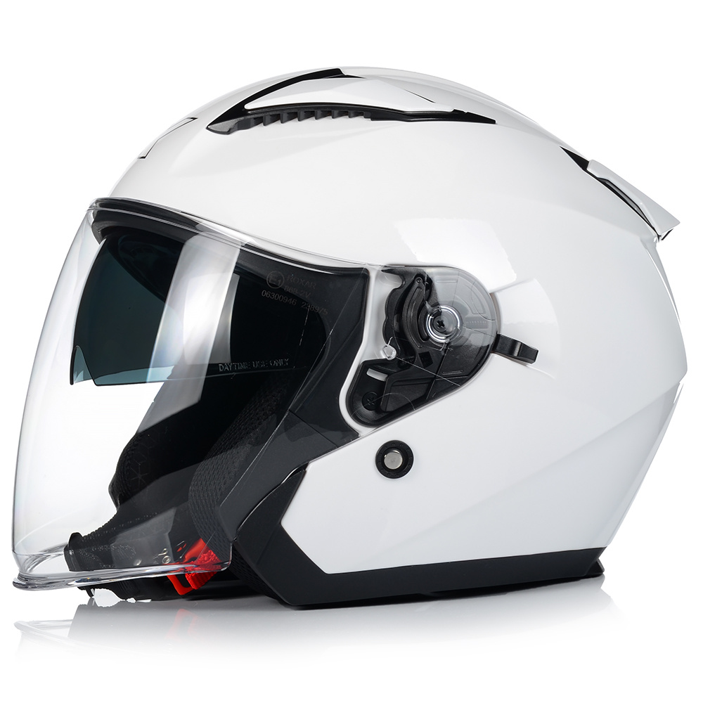 KASK MOTOCYKLOWY OTWARTY BIAŁY POŁYSK SKUTER CHOPPER + BLENDA ECER 22.06