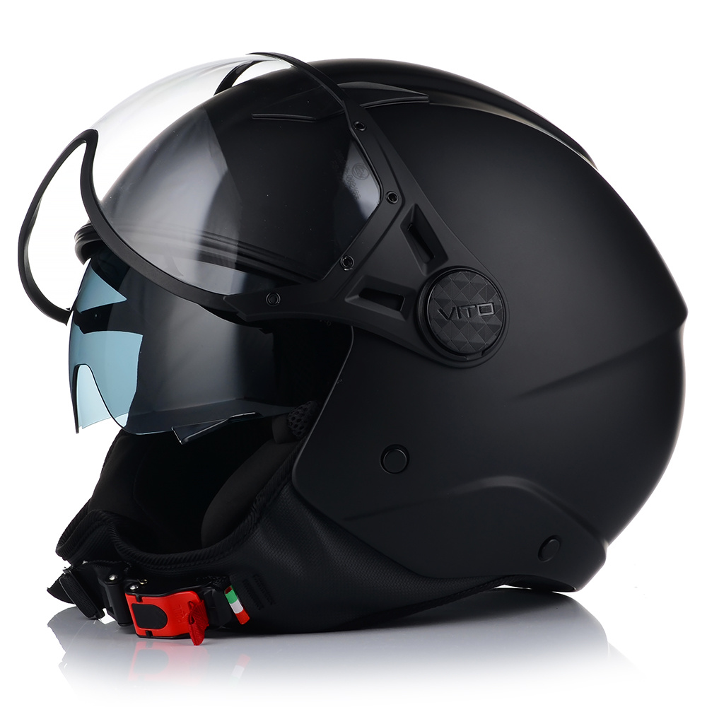 Kask VITO LAVORI to bezpieczny kask motocyklowy, posiadający certyfikat bezpieczeństwa ECE R 22.06. Model ten posiada innowacyjną skorupę i jest wykonany z materiałów wysokiej jakości. Waga tego kasku, to zaledwie 1100g. Idealny do jazdy miejskiej i turystycznej na skuterach i chopperach.
