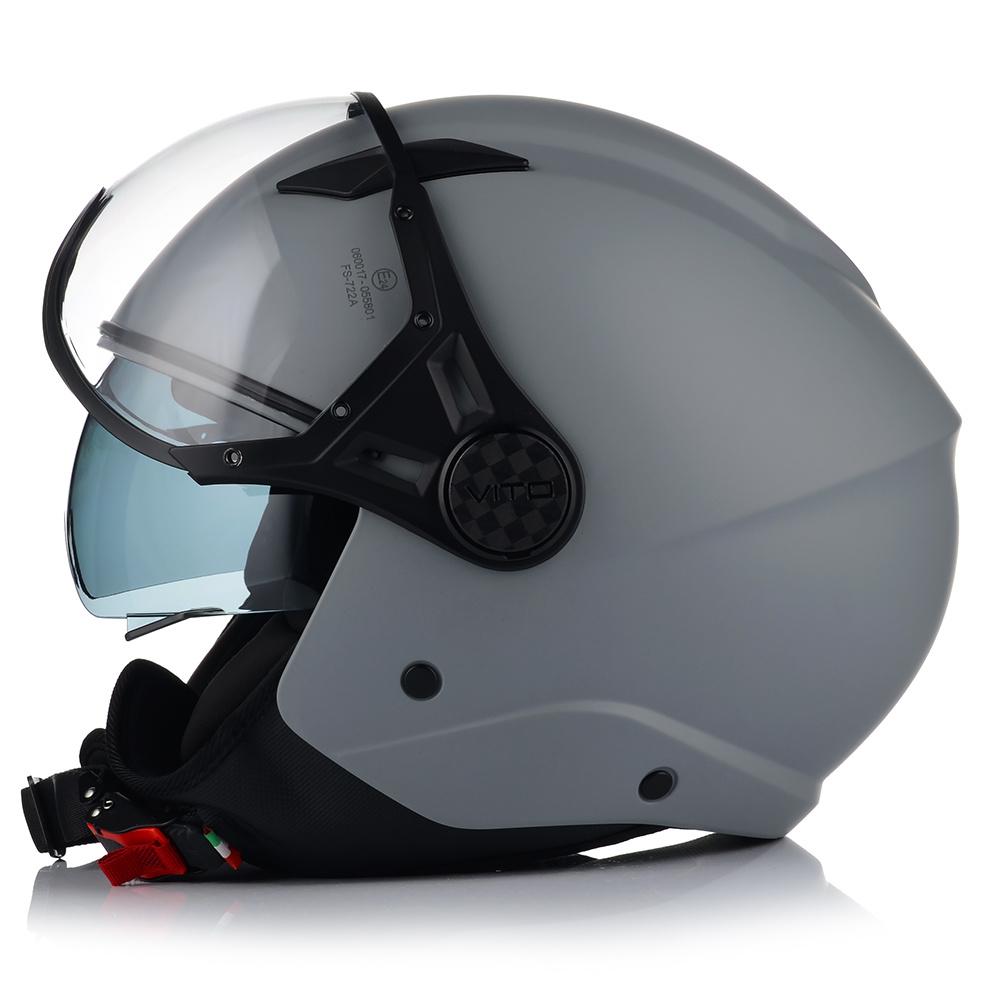 Kask VITO LAVORI to bezpieczny kask motocyklowy, posiadający certyfikat bezpieczeństwa ECE R 22.06. Model ten posiada innowacyjną skorupę i jest wykonany z materiałów wysokiej jakości. Waga tego kasku, to zaledwie 1100g. Idealny do jazdy miejskiej i turystycznej na skuterach i chopperach.