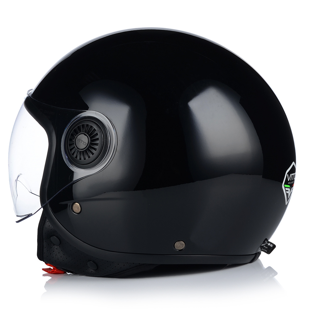 Kask VITO LORETO to bezpieczny kask motocyklowy, posiadający certyfikat bezpieczeństwa ECE R 22.06. Model ten posiada innowacyjną skorupę i jest wykonany z materiałów wysokiej jakości. Waga tego kasku, to zaledwie 1100g. Idealny do jazdy miejskiej i turystycznej na skuterach i chopperach.