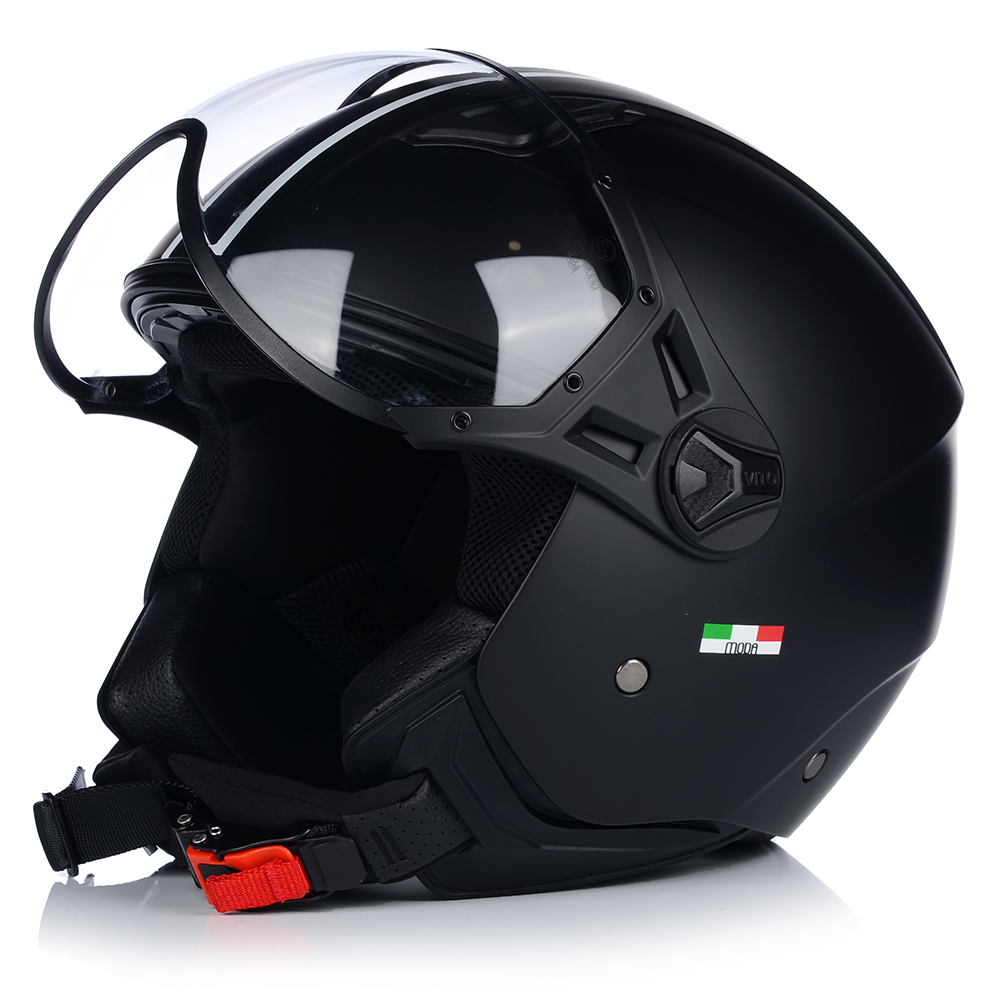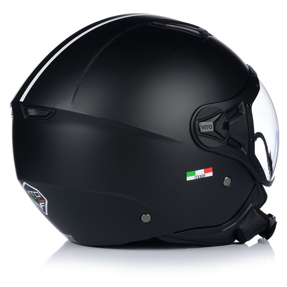 Kask VITO MODA to bezpieczny kask motocyklowy, posiadający certyfikat bezpieczeństwa ECE R 22.06. Model ten posiada innowacyjną skorupę i jest wykonany z materiałów wysokiej jakości. Waga tego kasku, to zaledwie 1100g. Idealny do jazdy miejskiej i turystycznej na skuterach i chopperach.