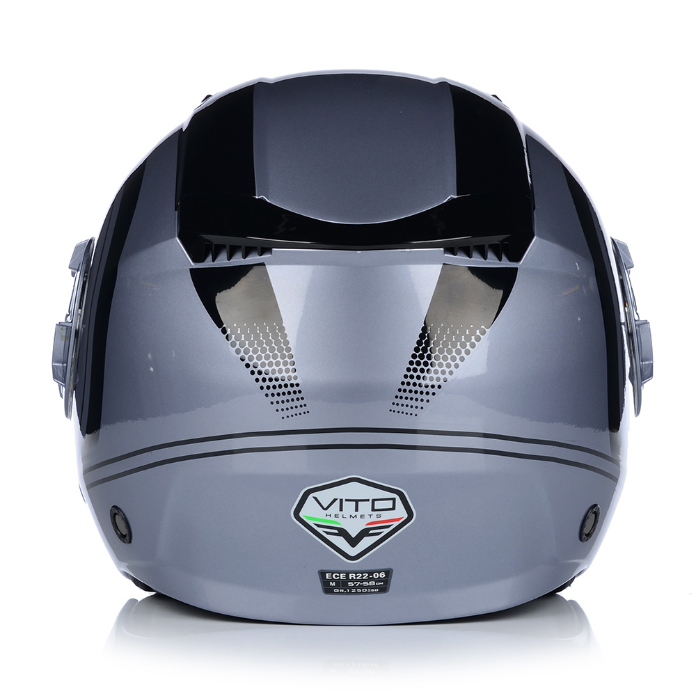 Kask VITO ISOLA to bezpieczny kask motocyklowy, posiadający certyfikat bezpieczeństwa ECE R 22.06. Model ten posiada innowacyjną skorupę, jest wykonany z materiałów wysokiej jakości, oraz posiada zintegrowaną i ruchomą blendę przeciwsłoneczną.