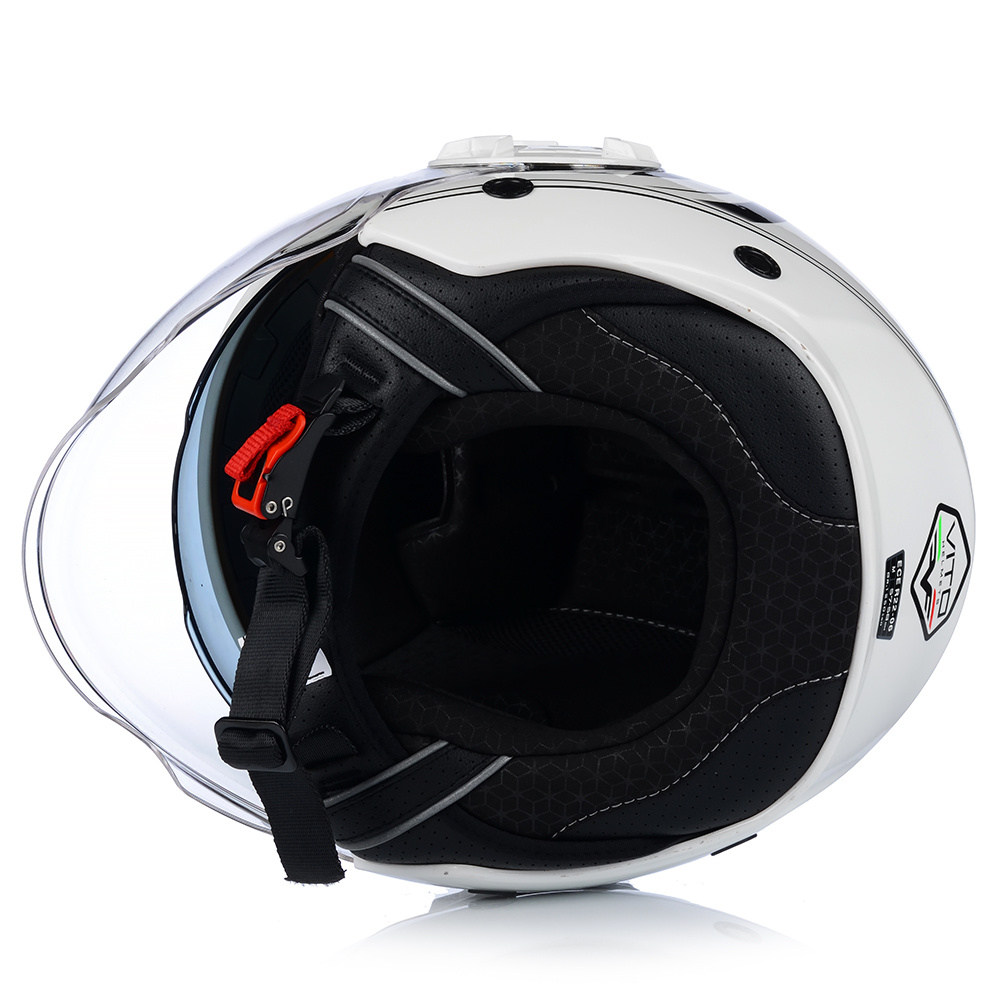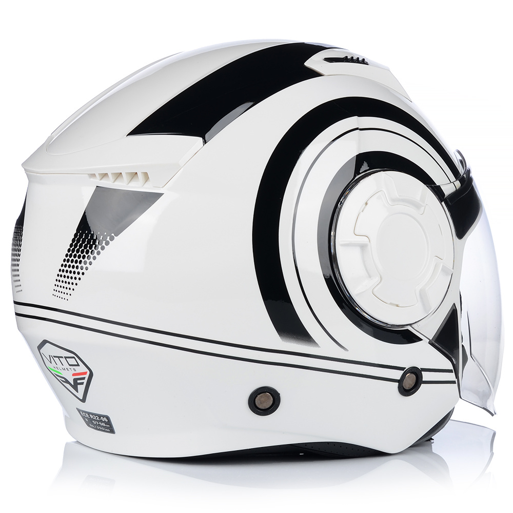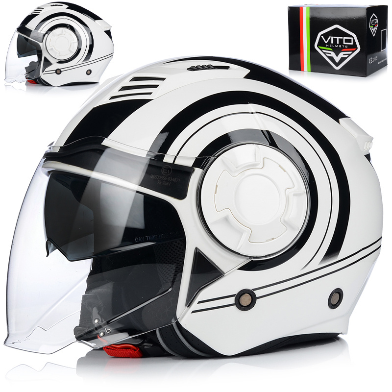 Kask VITO ISOLA to bezpieczny kask motocyklowy, posiadający certyfikat bezpieczeństwa ECE R 22.06. Model ten posiada innowacyjną skorupę, jest wykonany z materiałów wysokiej jakości, oraz posiada zintegrowaną i ruchomą blendę przeciwsłoneczną.