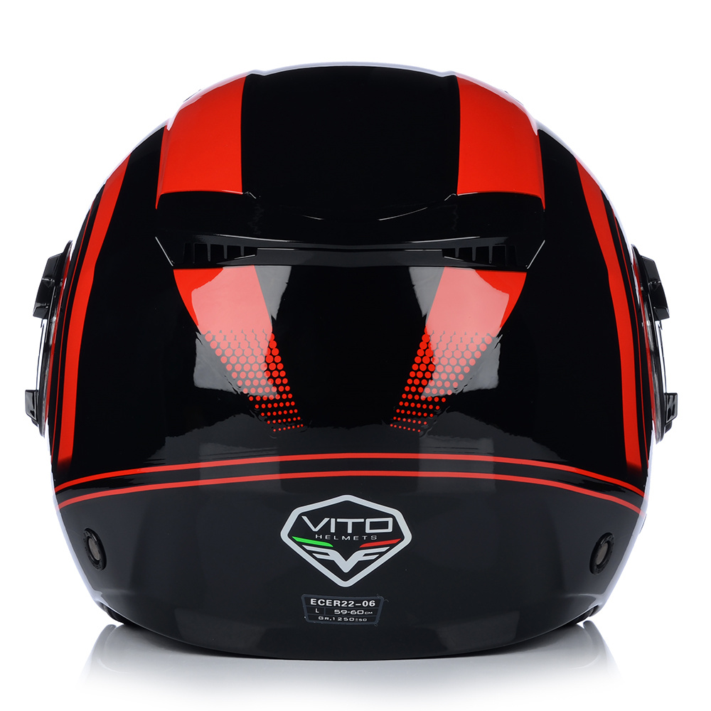 Kask VITO ISOLA to bezpieczny kask motocyklowy, posiadający certyfikat bezpieczeństwa ECE R 22.06. Model ten posiada innowacyjną skorupę, jest wykonany z materiałów wysokiej jakości, oraz posiada zintegrowaną i ruchomą blendę przeciwsłoneczną.