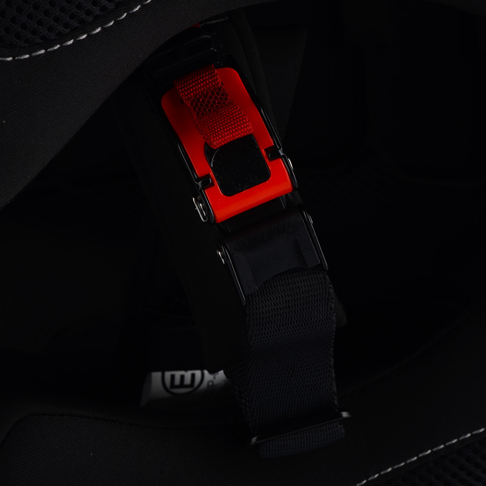 Vito Marelli to praktyczny kask z termoplastyczną skorupą, wizjerem clear anti-scratch z blokadą oraz mozliwością montażu Pinlocka dla lepszej widoczności. Komfort zapewnia system wentylacji, a dopasowanie ułatwia mikrometryczne zapięcie i wypinana, pralna wyściółka.