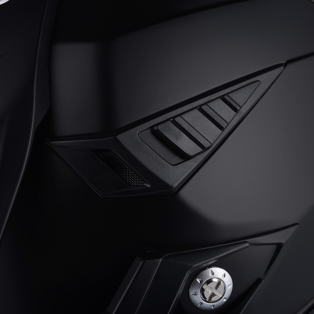• Zaawansowany system wentylacji: wloty z przodu w szczęce i na czole, oraz wyloty z tyłu kasku