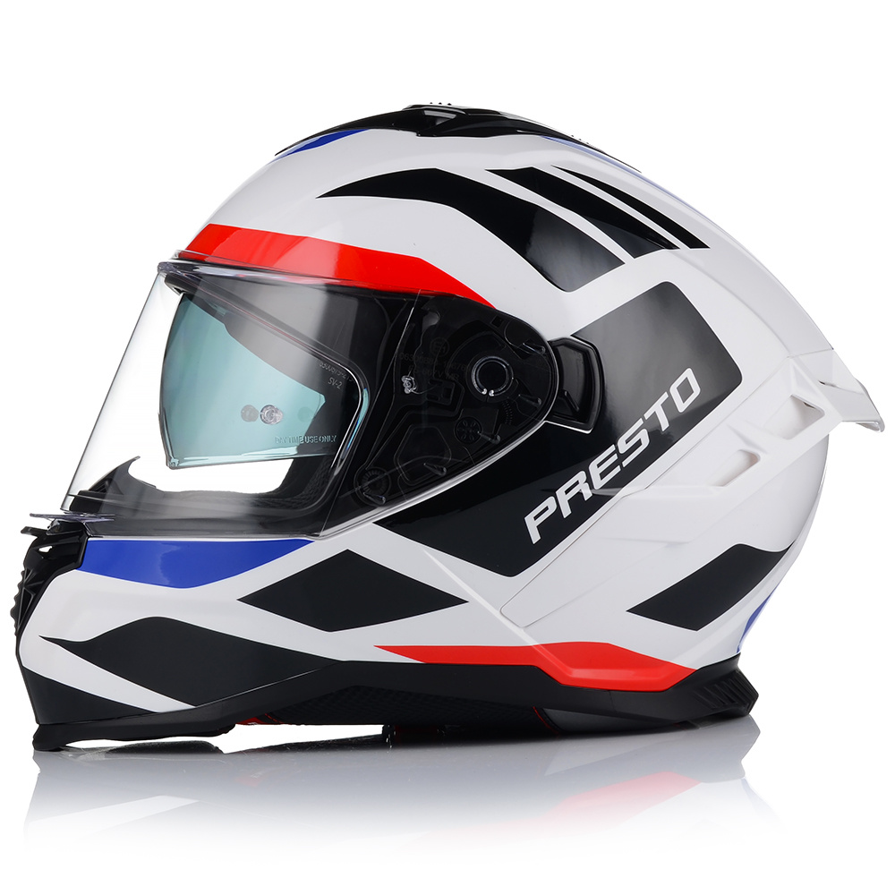 Kask VITO Presto, to najnowszy model kasku integralnego. Wykonany z materiałów bardzo wysokiej jakości, przystosowany do montażu systemu interkom oraz pinlocka. Model ten posiada wbudowaną blendę przeciwsłoneczną, oraz wpełni wyjmowane wnętrze z możliwością prania.