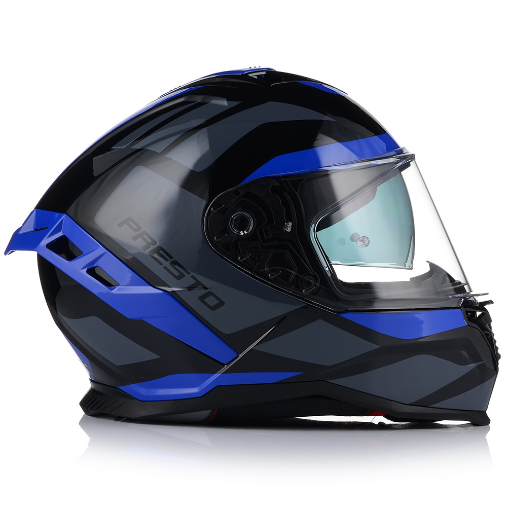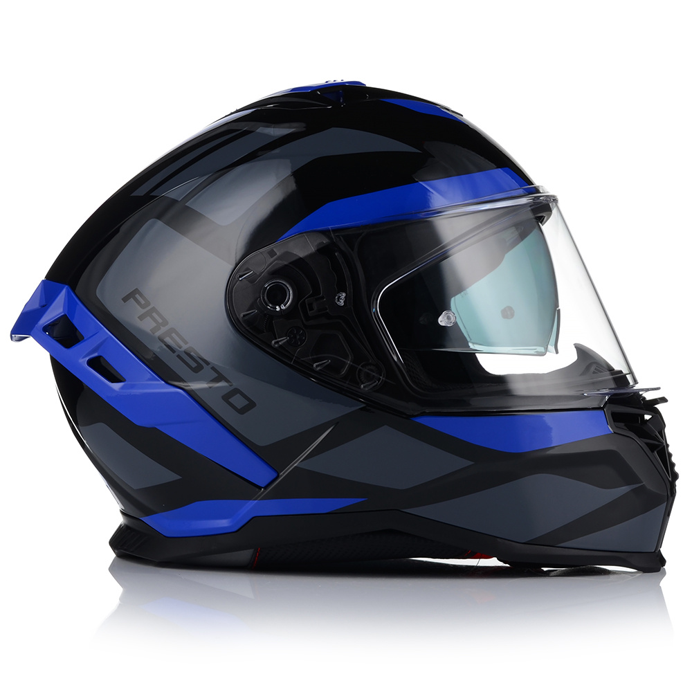 Kask VITO Presto, to najnowszy model kasku integralnego. Wykonany z materiałów bardzo wysokiej jakości, przystosowany do montażu systemu interkom oraz pinlocka. Model ten posiada wbudowaną blendę przeciwsłoneczną, oraz wpełni wyjmowane wnętrze z możliwością prania.