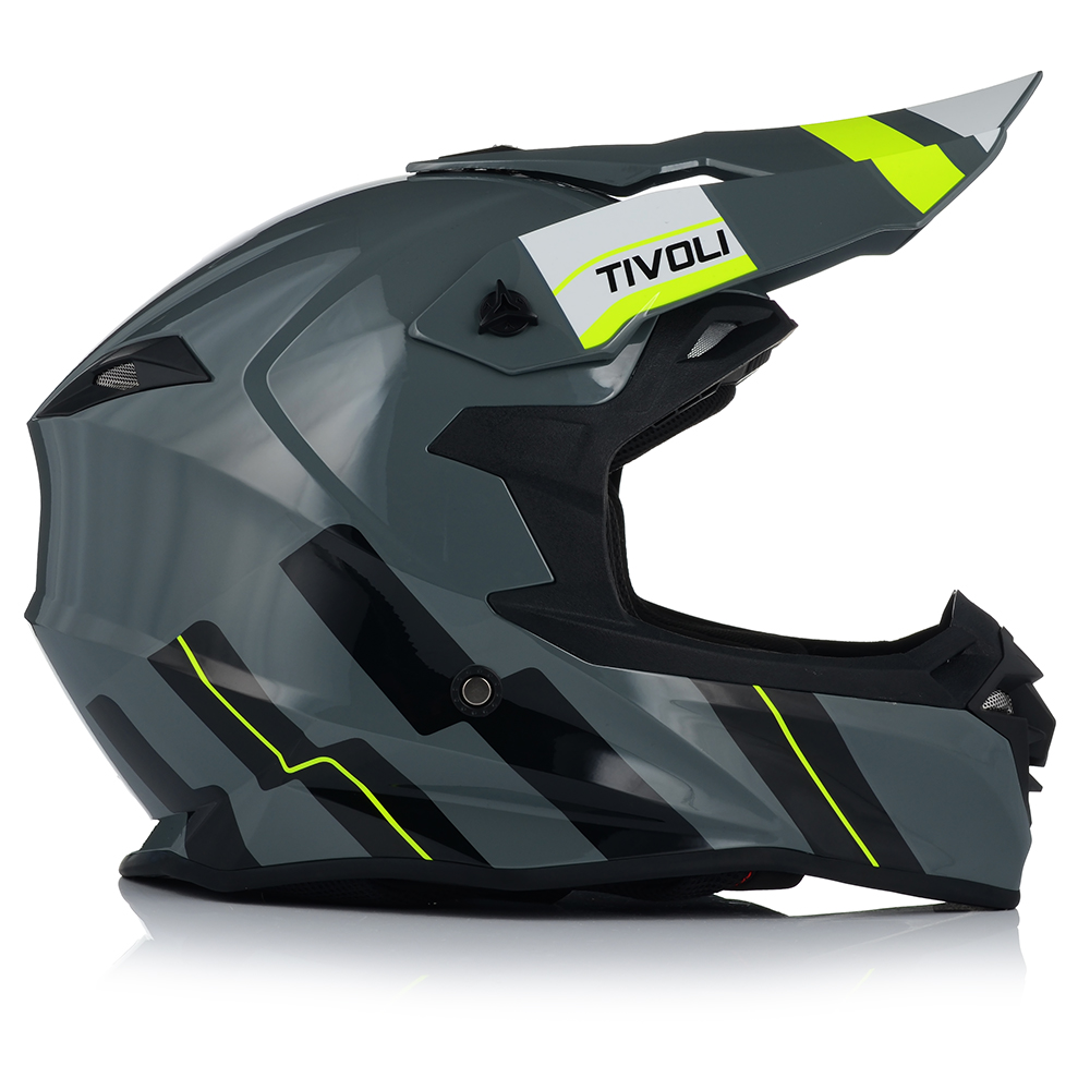 Kask VITO Tivoli to bezpieczny kask motocyklowy, posiadający certyfikat bezpieczeństwa ECE R 22.06. Producent wyposażył ten model w pełni wyciągane wnętrze, które bez problemu mozna wybrać. Za wentylację odpowiadają duże otowory wentylacyjne umieszczone w szczęce i na czole, oraz wyloty z tyłu.