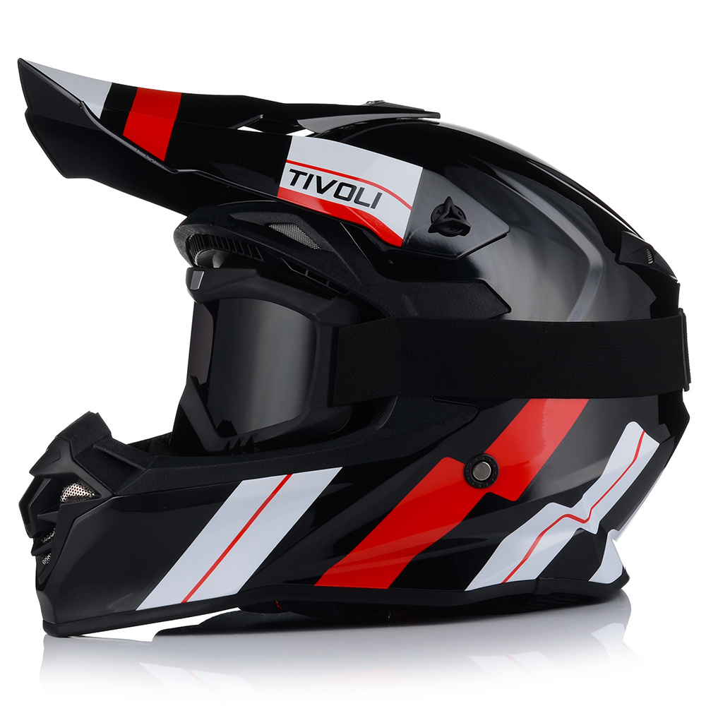 KASK MOTOCYKLOWY VITO TIVOLI BLACK/RED + GOGLE