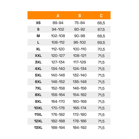 - aby prawidłowo dopasować rozmiar należy sugerować się podaną tabelą
