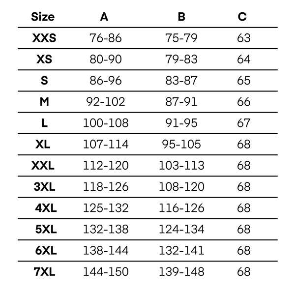 • aby prawidłowo dopasować kurtkę należy sugerować się podaną tabelą