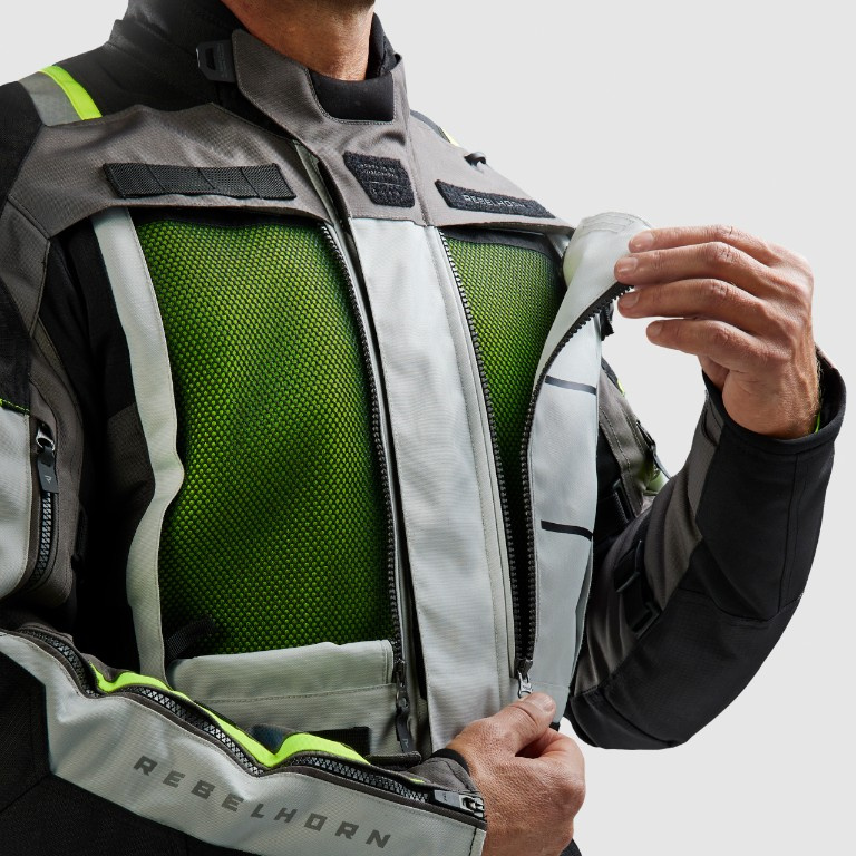 Rebelhorn Cubby V to motocyklowa kurtka turystyczna 3-warstwowa, stworzona z myślą o motocyklistach, którzy podróżują w różnych warunkach. Dzięki nowoczesnej membranie HydraShieldTM Pro typu in&out oraz innowacyjnym rozwiązaniom, kurtka zapewnia zarówno bezpieczeństwo, jak i komfort jazdy. Rozbudowany system wentylacji oraz wypinana kamizelka ocieplająca sprawiają, że kurtka ta jest gotowa na każdą przygodę niezależnie od pogody.