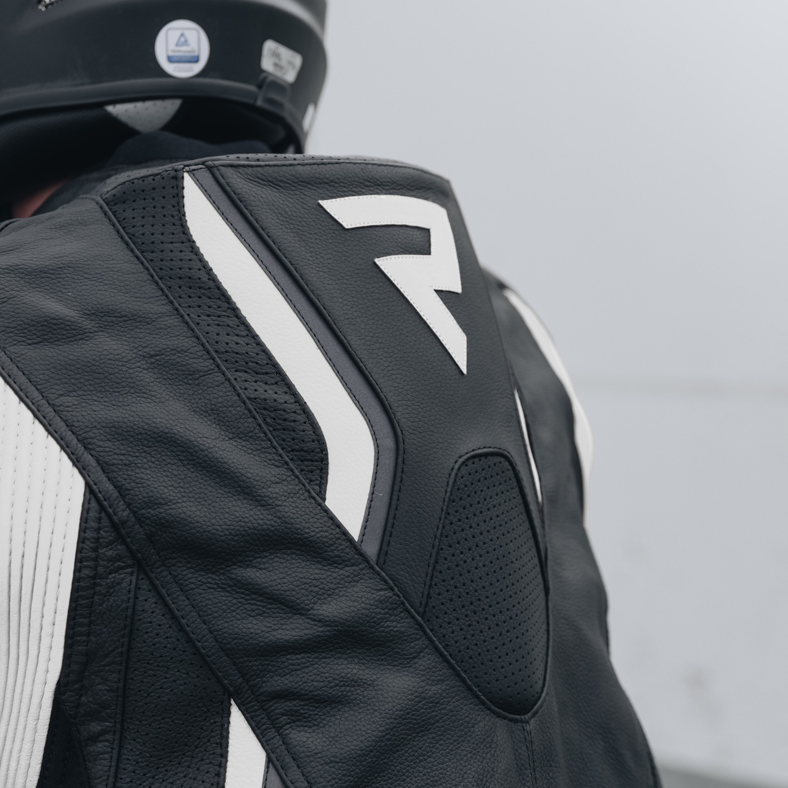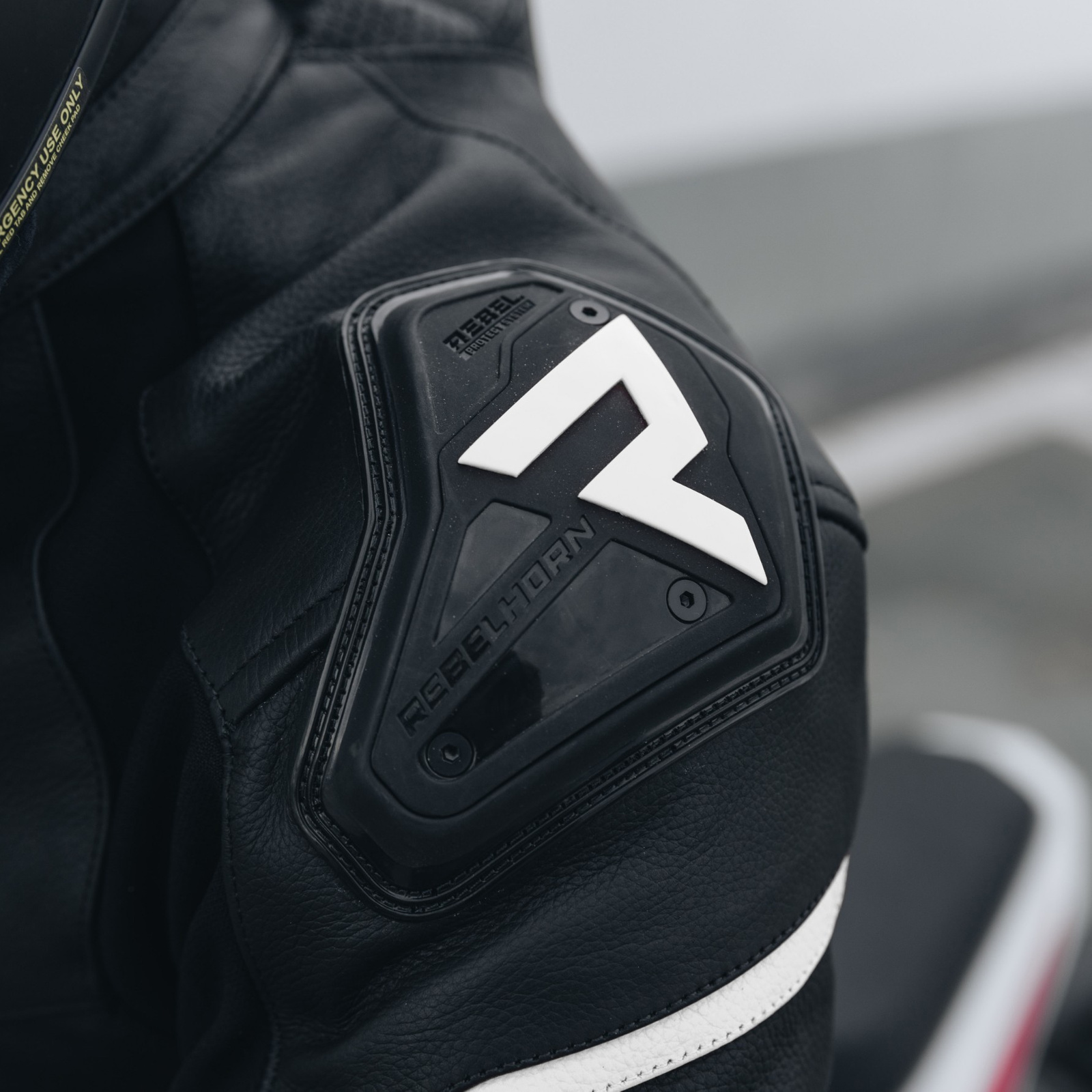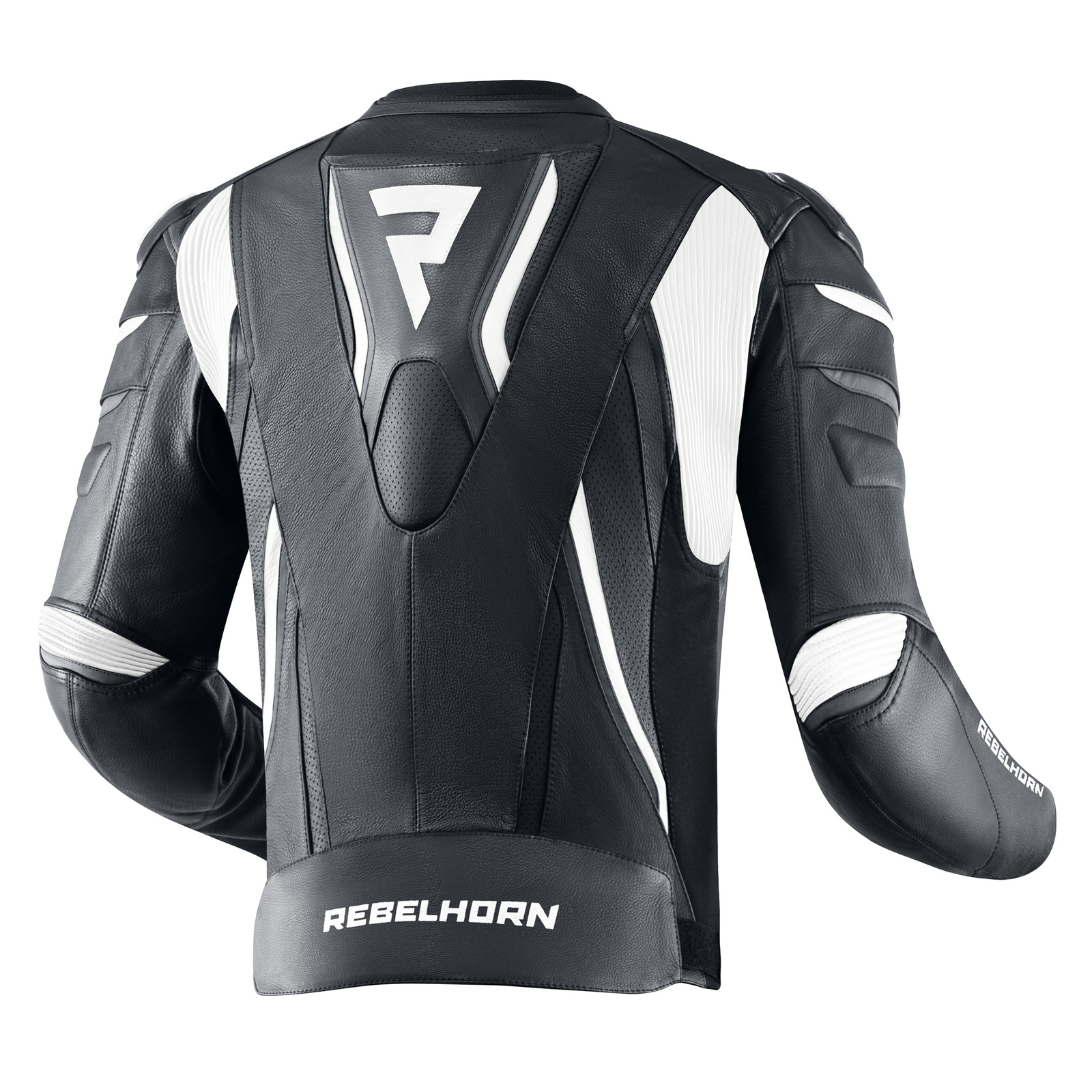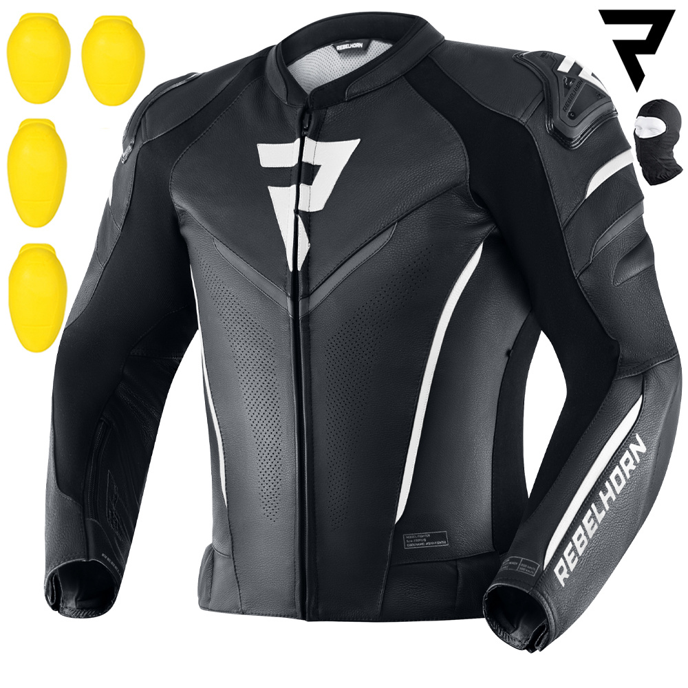 KURTKA MOTOCYKLOWA | REBELHORN FIGHTER BLK/WHT | MĘSKA SKÓRZANA SPORT + GRATIS