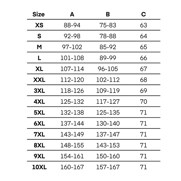 - aby prawidłowo dopasować kurtkę należy sugerować się podaną tabelą