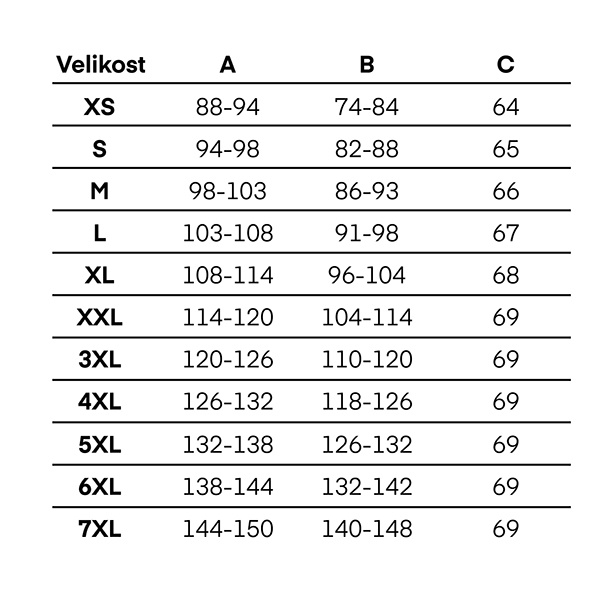 • aby prawidłowo dopasować kurtkę należy sugerować się podaną tabelą
