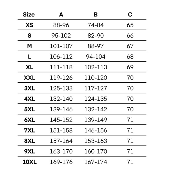 - aby prawidłowo dopasować kurtkę należy sugerować się podaną tabelą