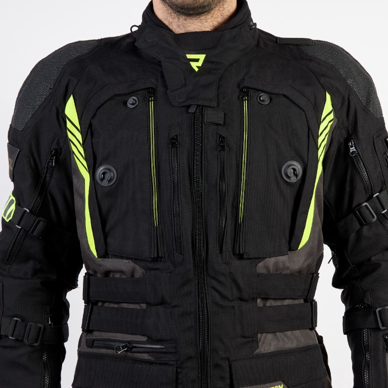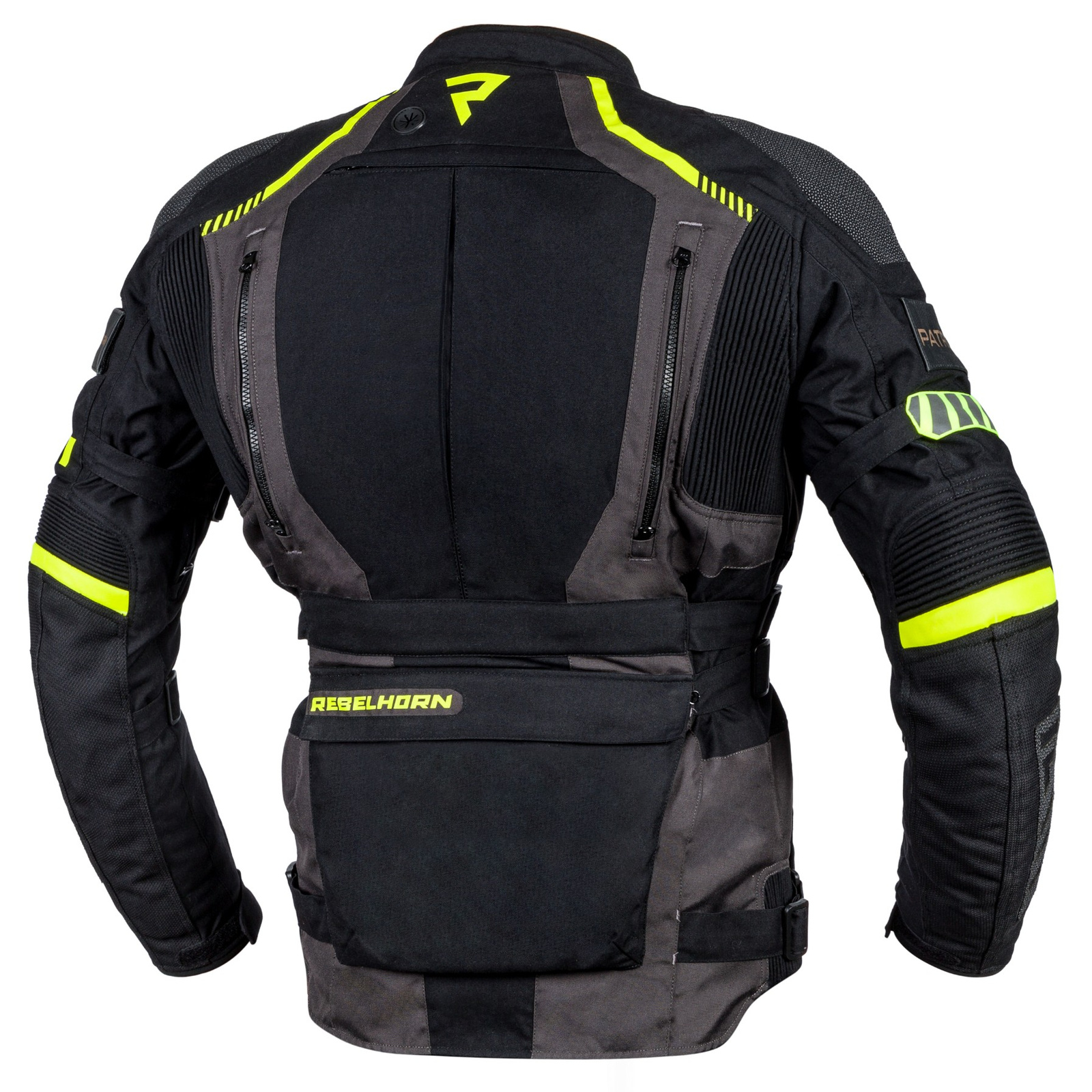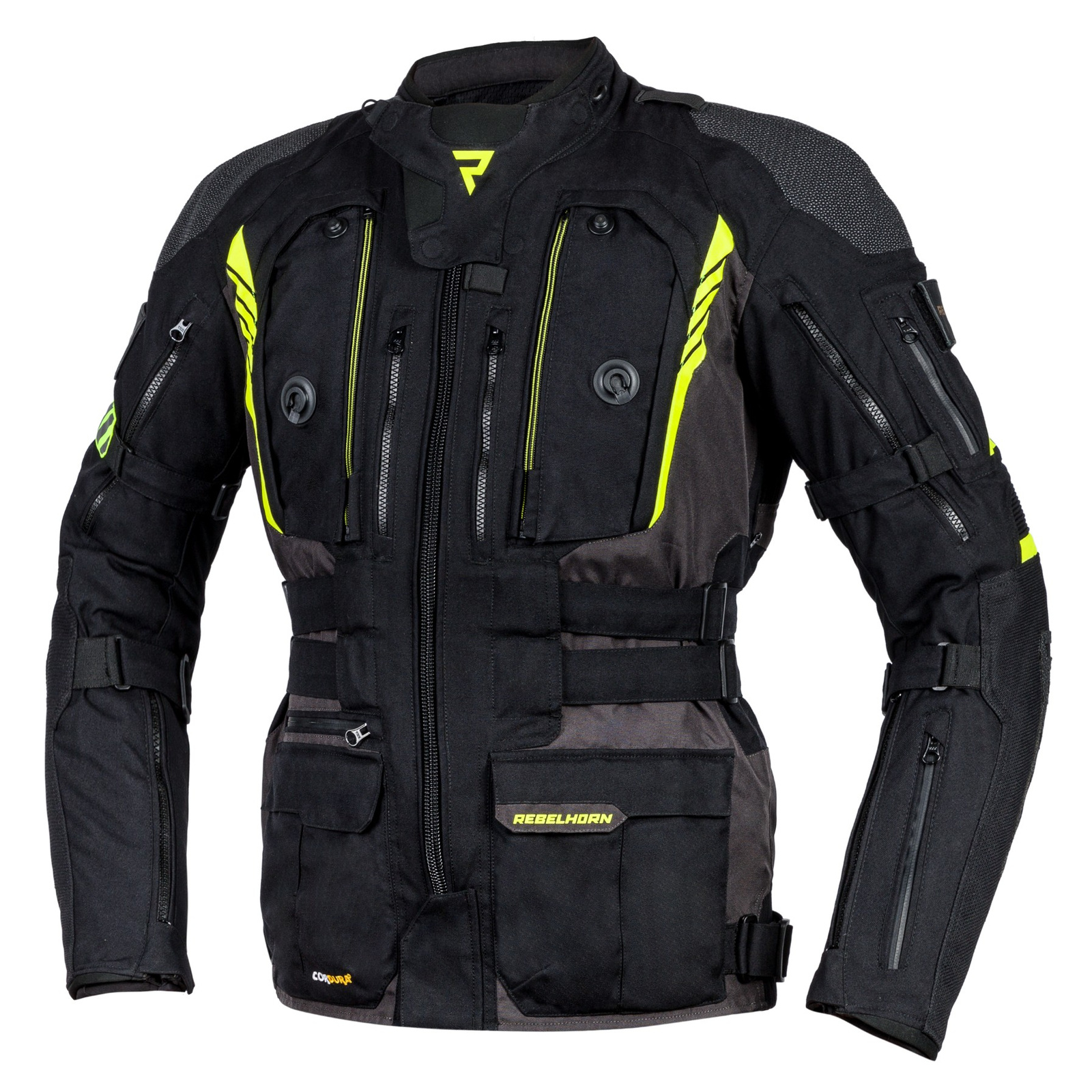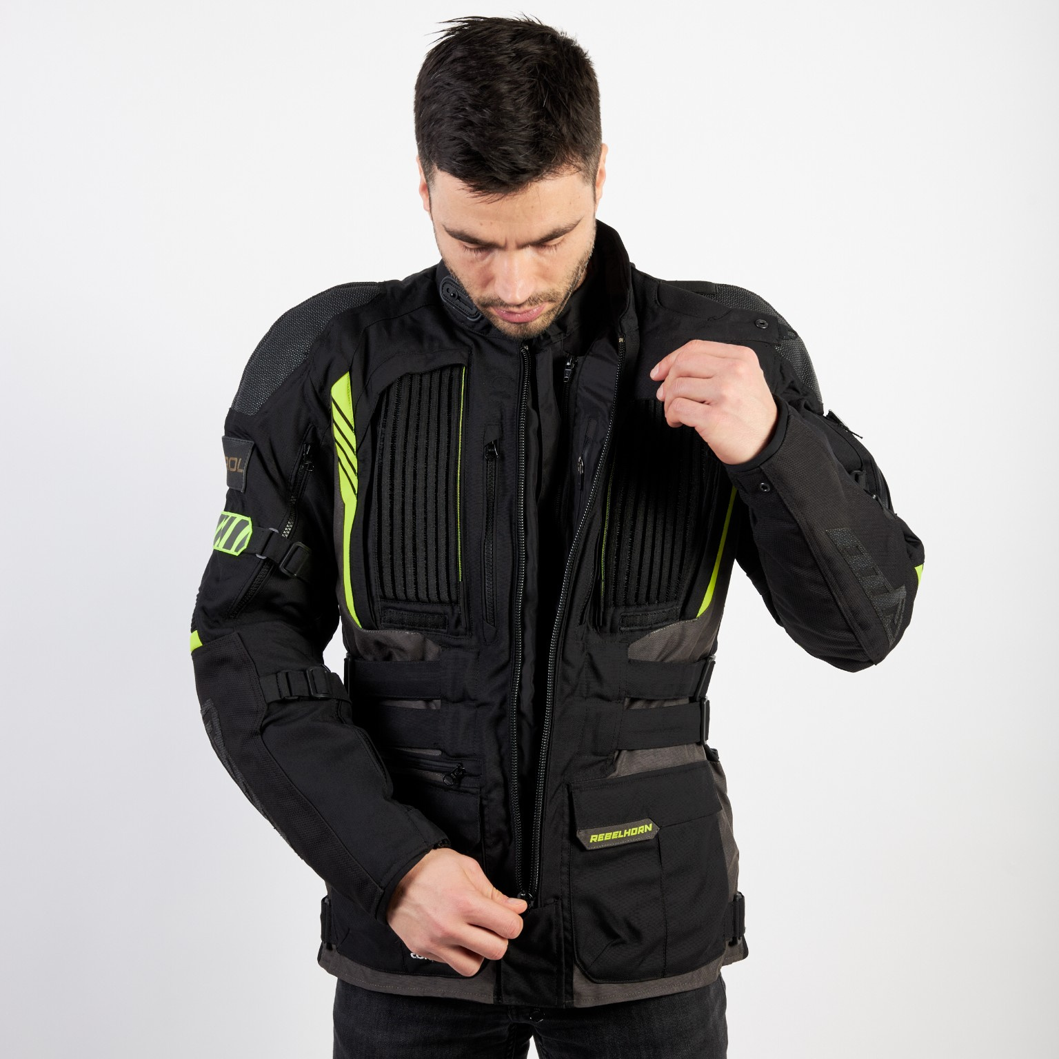 Bardzo wytrzymałe i odporne na uszkodzenia materiały Cordura®, Hitena® Dobby Ballistic oraz Superfabric® stanowią pierwszą linię ochrony w razie upadku. Rebelhorn Patrol ma rozbudowany system regulacji, który zapewnia optymalne dopasowanie niezależnie od liczby wpiętych do kurtki wewnętrznych warstw.