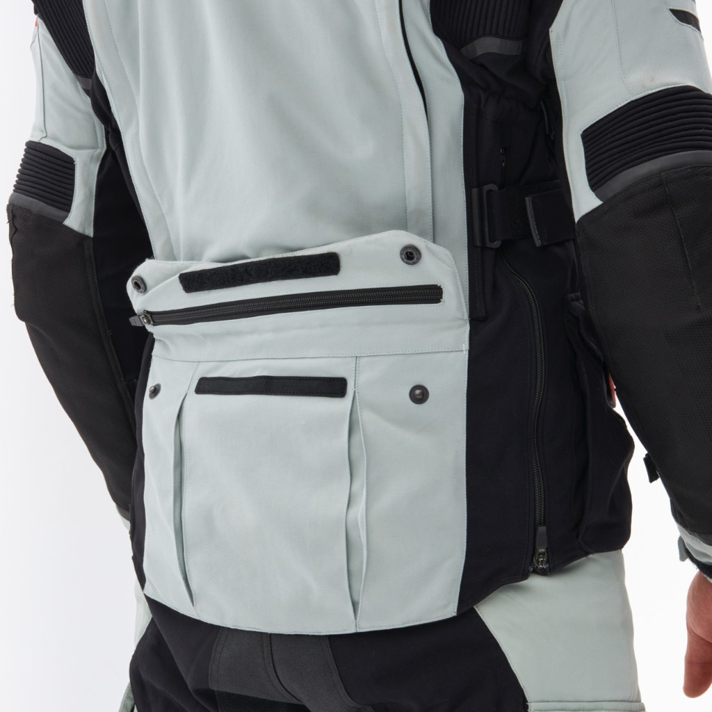 • Wydajna wentylacja na plecach z regulacją, obsługiwana przez długie zamki po bokach kurtki