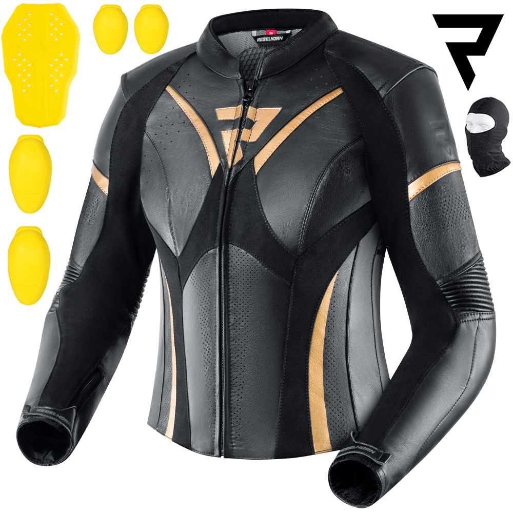 Kurtka motocyklowa skórzana Rebelhorn Rebel Lady ma komplet ochraniaczy SAS-TEC®. Newralgiczne miejsca zostały podszyte Kevlarem. Krój Rebelhorn Rebel podkreśla kobiecą sylwetkę. Kurtkę można spiąć ze spodniami z tej samej serii, tworząc w ten sposób dwuczęściowy skórzany kombinezon.