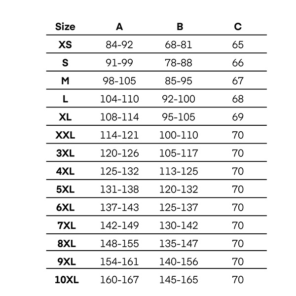 • aby prawidłowo dopasować kurtkę należy sugerować się podaną tabelą