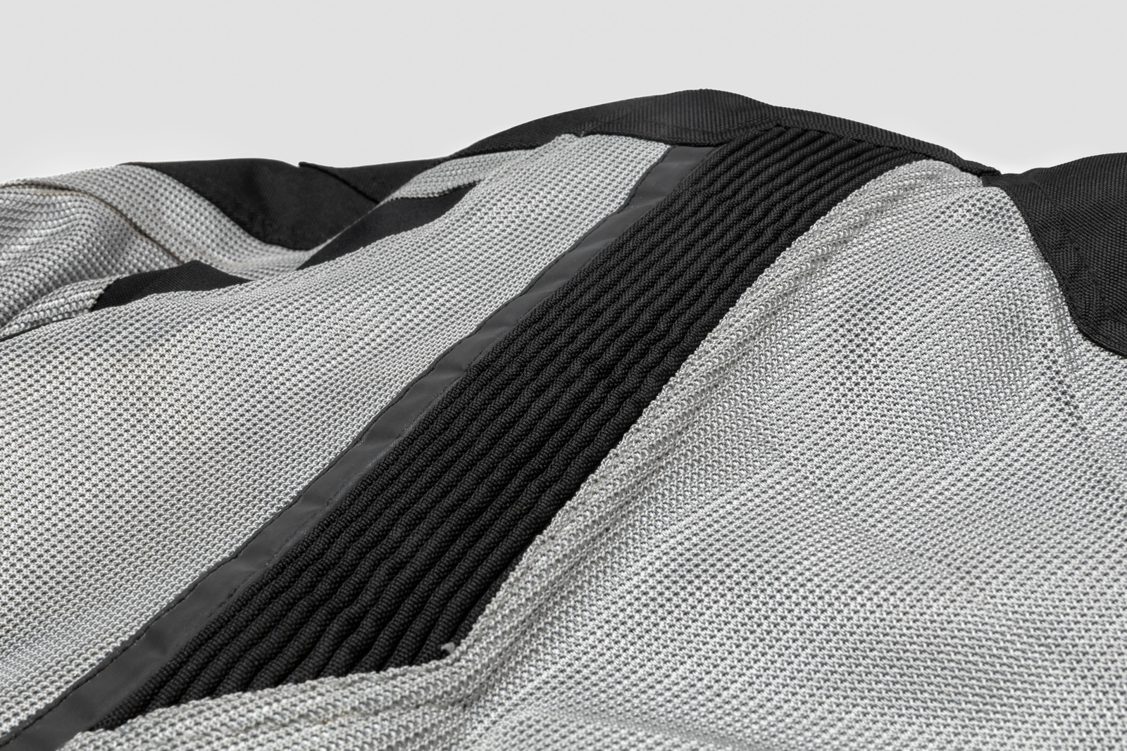 Kurtka została wykonana z wytrzymałego steel meshu, który idealnie przepuszcza powietrze, zapewniając optymalną wentylację. Dla zapewnienia maksymalnego komfortu kołnierz i mankiety rękawów zostały wykończone delikatnym materiałem.