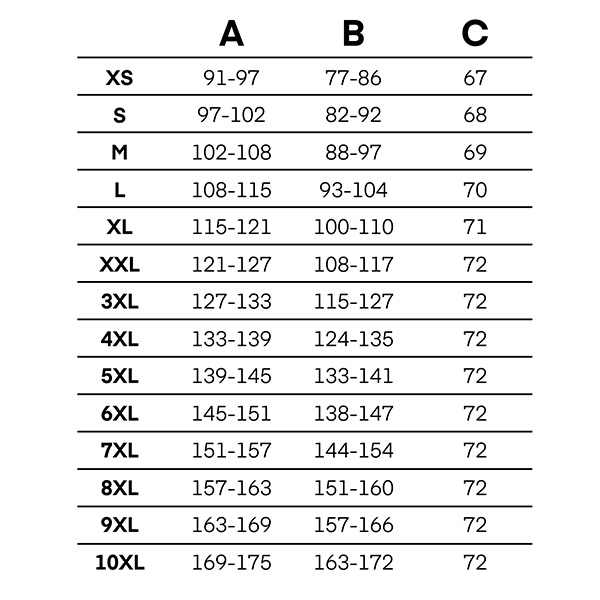 - aby prawidłowo dopasować kurtkę należy sugerować się podaną tabelą