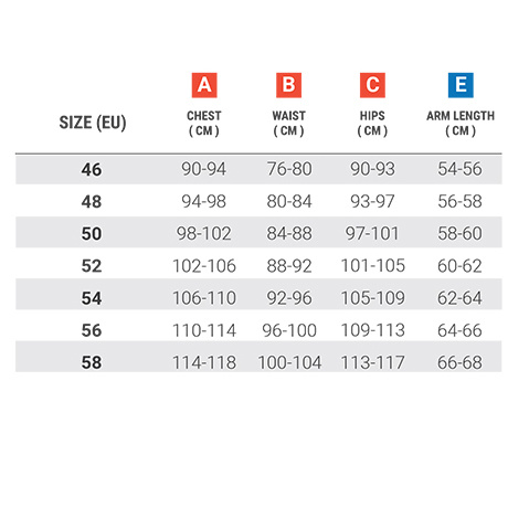- System Mix & match - możliwość łączenia różnych rozmiarów kurtki i spodni za pomocą zamków łączących