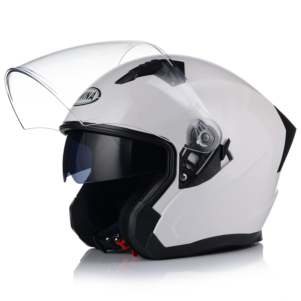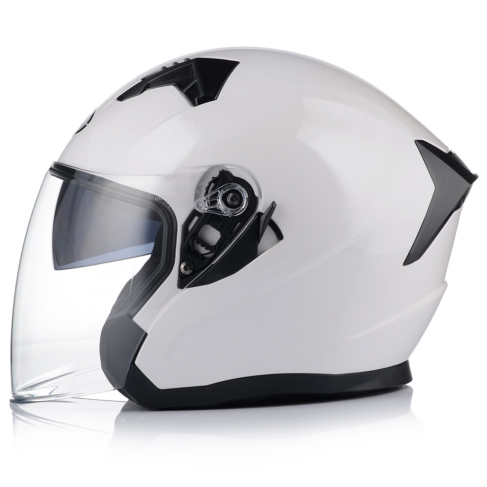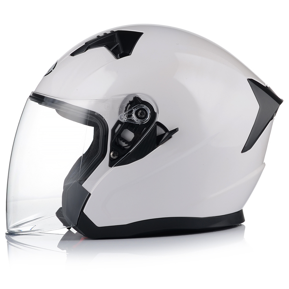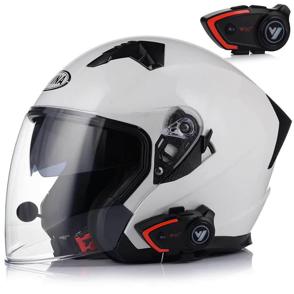 OTWARTY KASK MOTOCYKLOWY BIAŁY POŁYSK SKUTER CHOPPER + BLENDA + INTERKOM