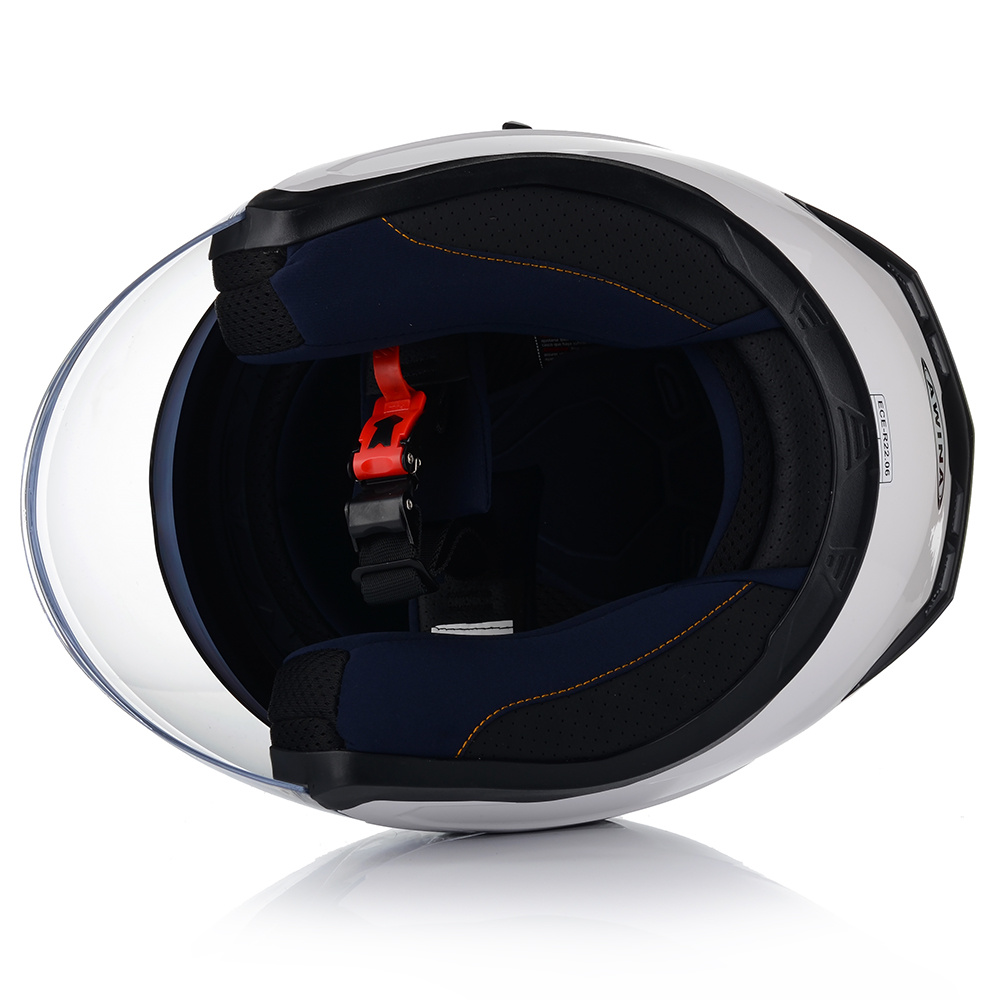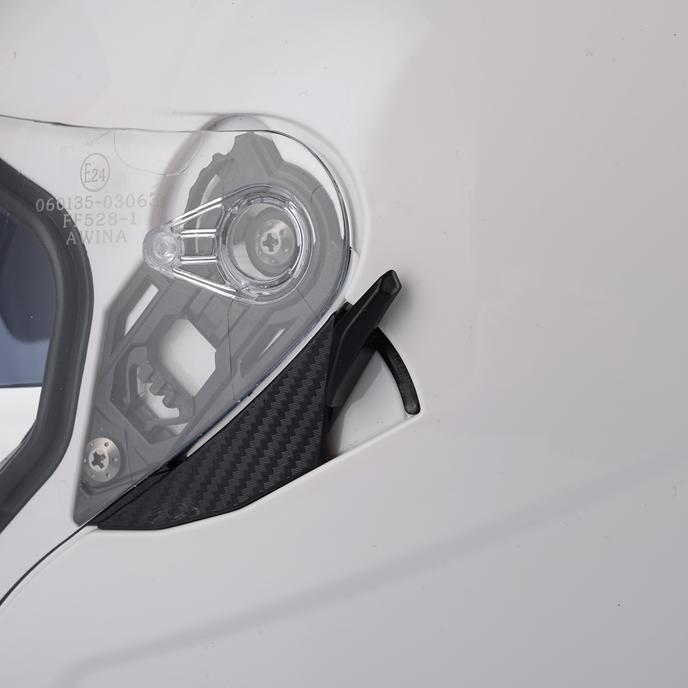 Kask posiada najnowszy certyfikat bezpieczeństwa ECER 22.06 - co oznacza że przeszedł rygorystyczne testy bezpieczństwa i jest dopuszczony do żytku publicznego. Dodatkowym atutem jest to iż kask posiada blendę przeciwsłoneczną chowaną w skorupę kasku, wyjmowane wnętrze i możliwość montażu zestawu głośnomówiącego.