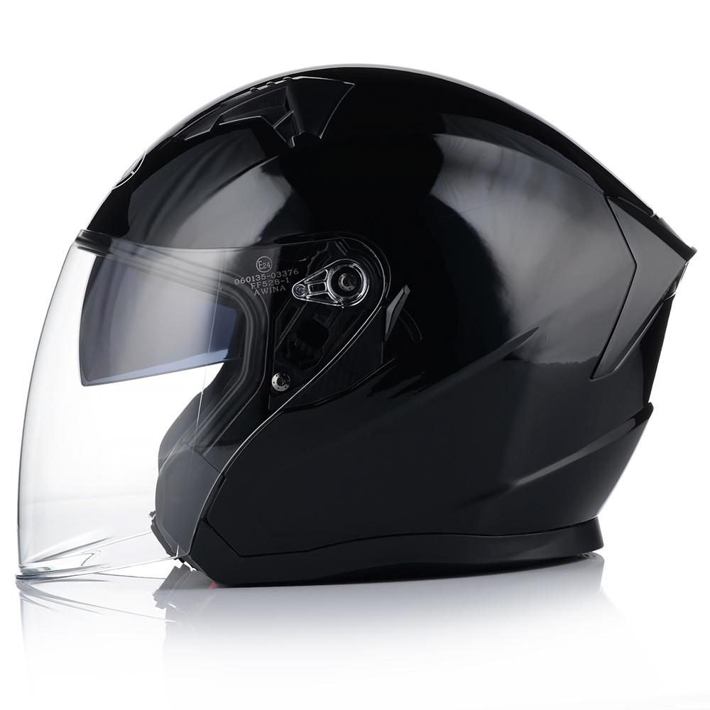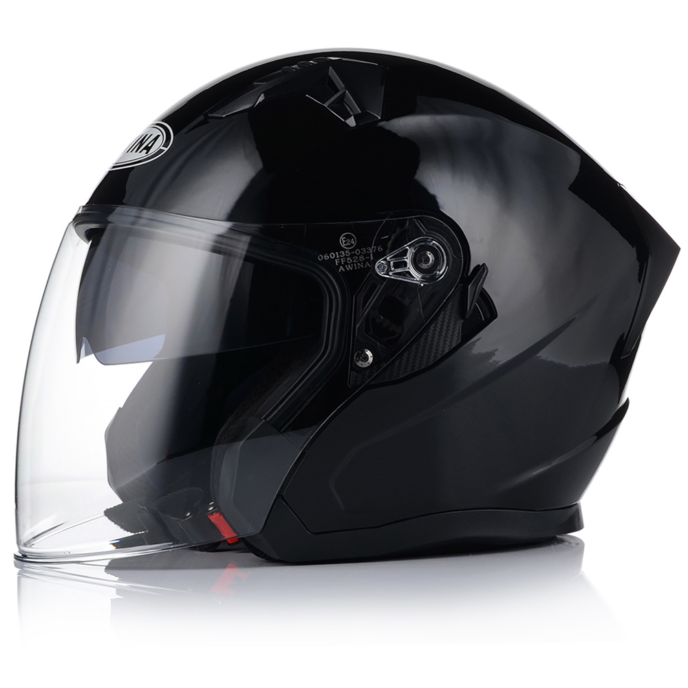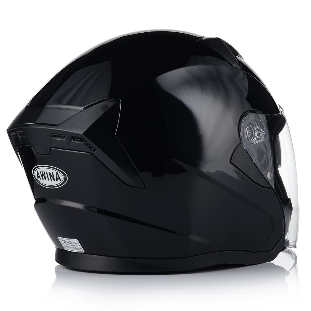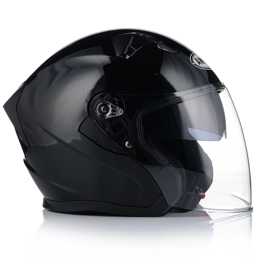 OTWARTY KASK MOTOCYKLOWY CZARNY POŁYSK SKUTER CHOPPER + BLENDA + INTERKOM XL